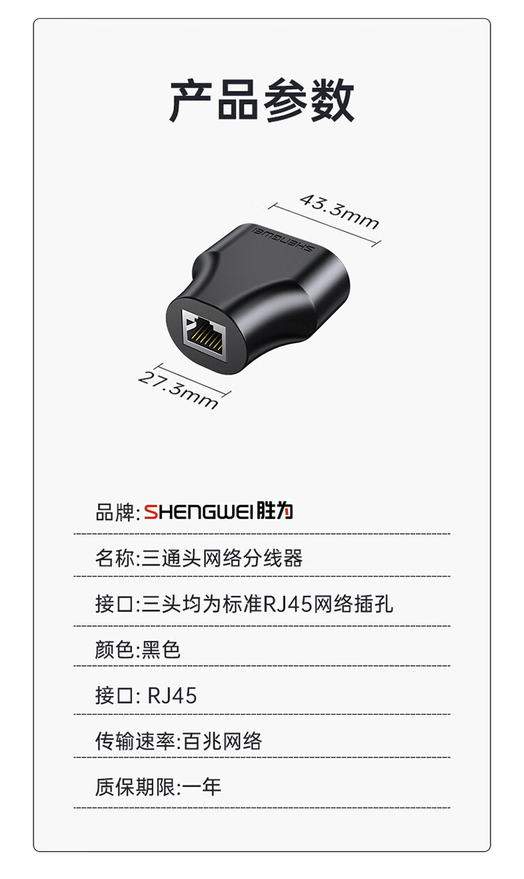 胜为 网络分线器 SH-830 千兆 网络三通头 1个