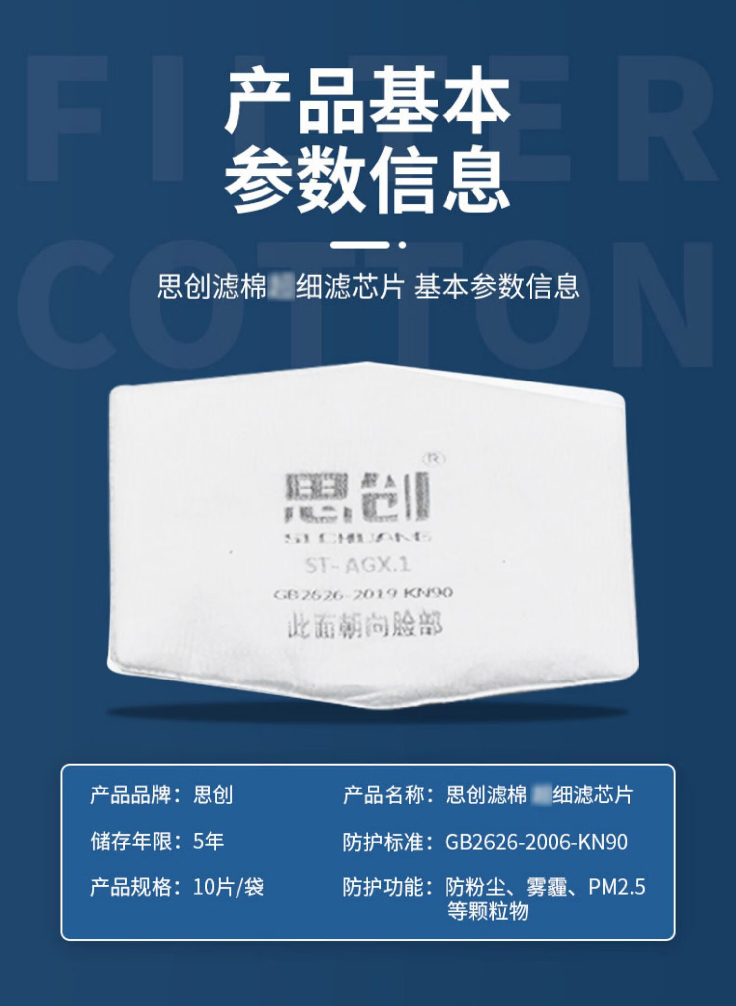 思创 静电纤维超细滤芯片 ST-AGX1 KN90 10片 1包