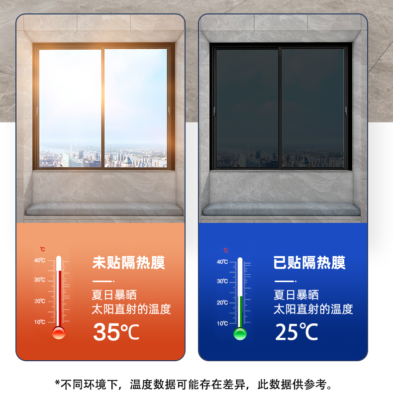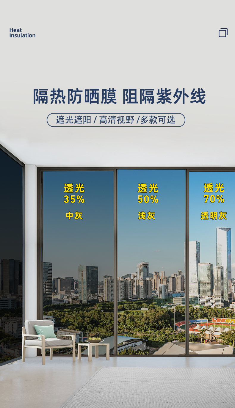 国产通用 玻璃防晒隔热膜 中灰(透光35%,中等遮光) 70cm宽 1米