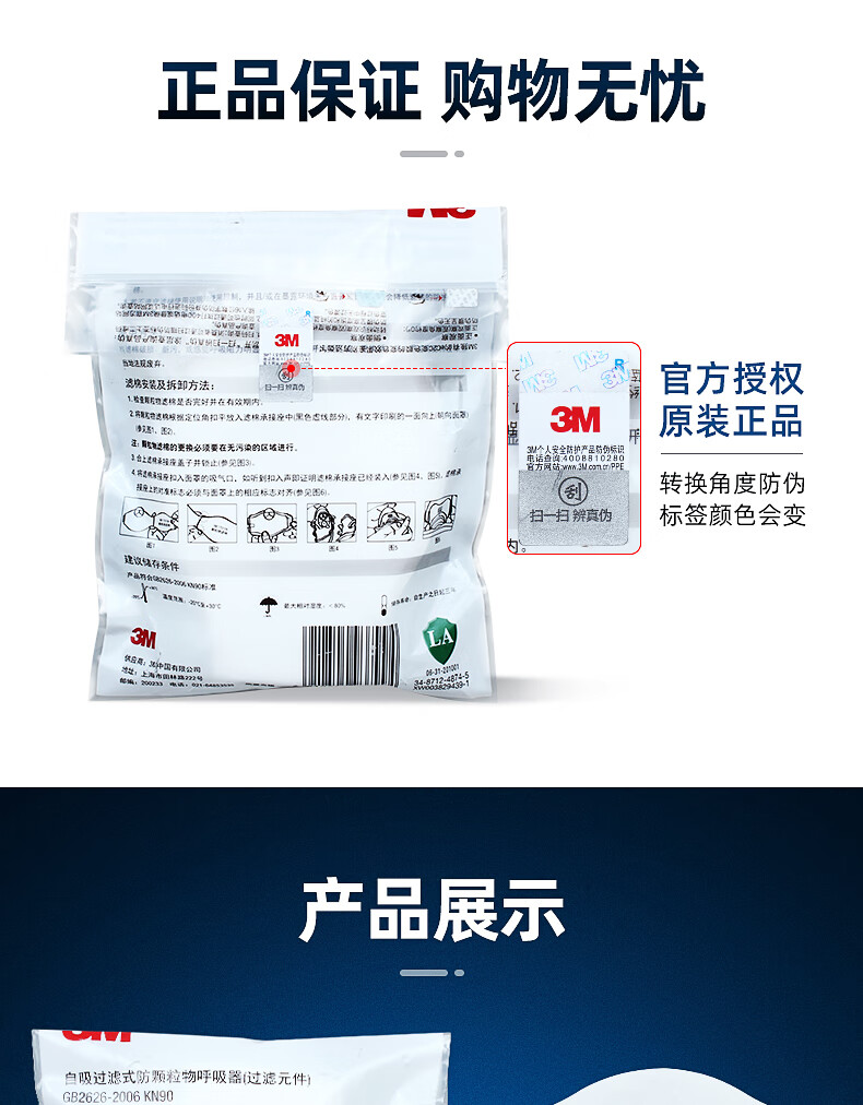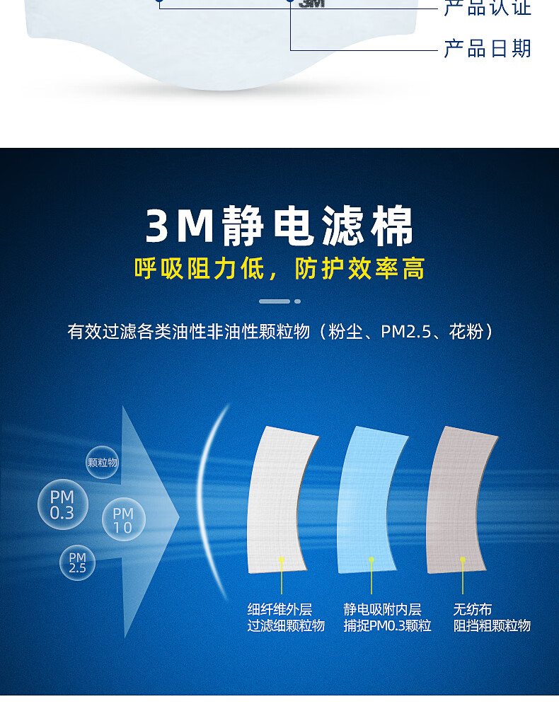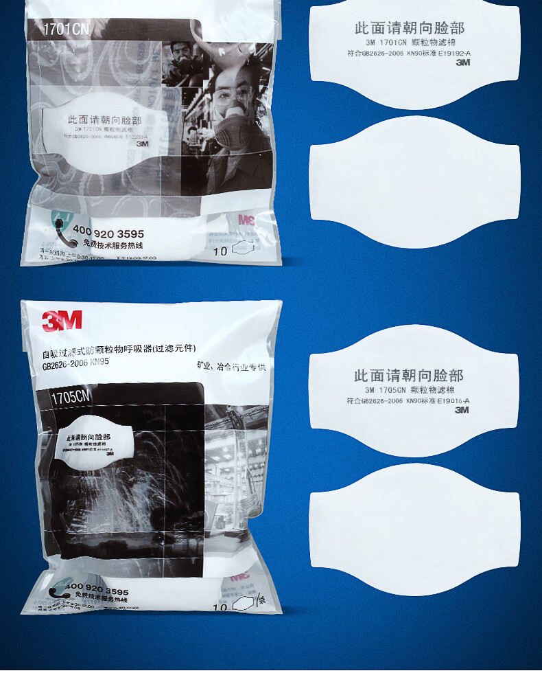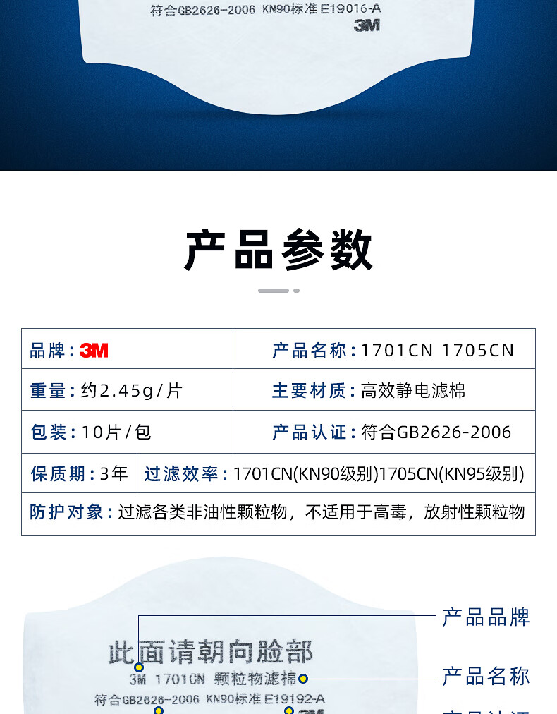 3M KN95颗粒物过滤棉 1703CN 符合中国GB2626-2019 KN95标准 1片