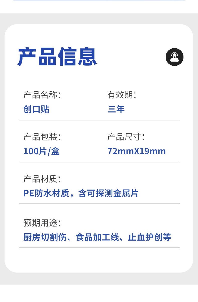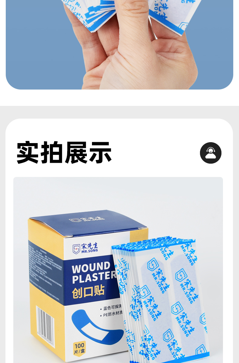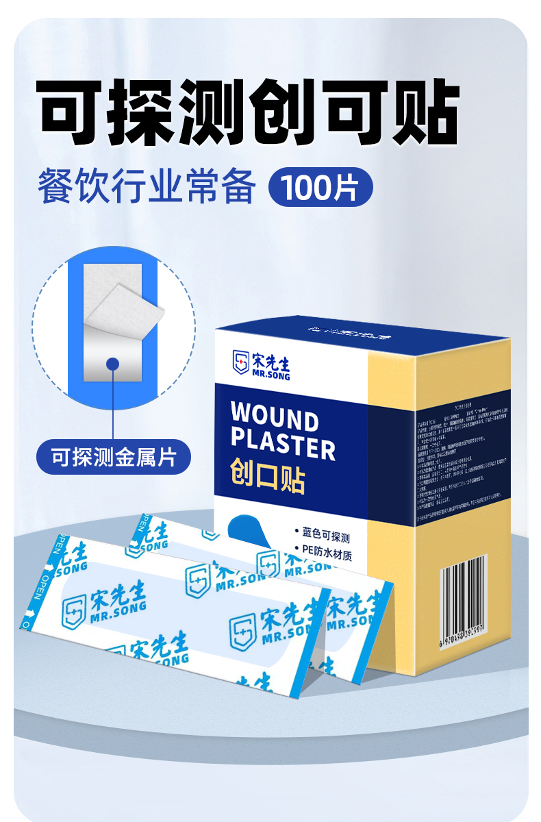 宋先生 可探测医用创口贴 蓝色 可探测 100片 1盒