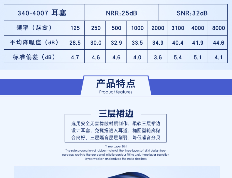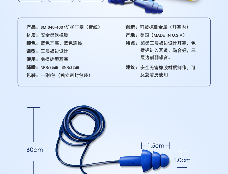 3M 圣诞树型带线耳塞 340-4007 SNR32dB 含可探测金属 1副