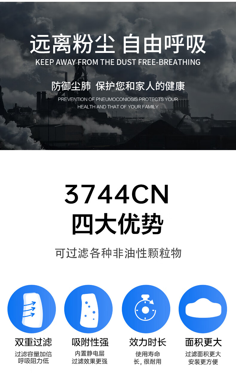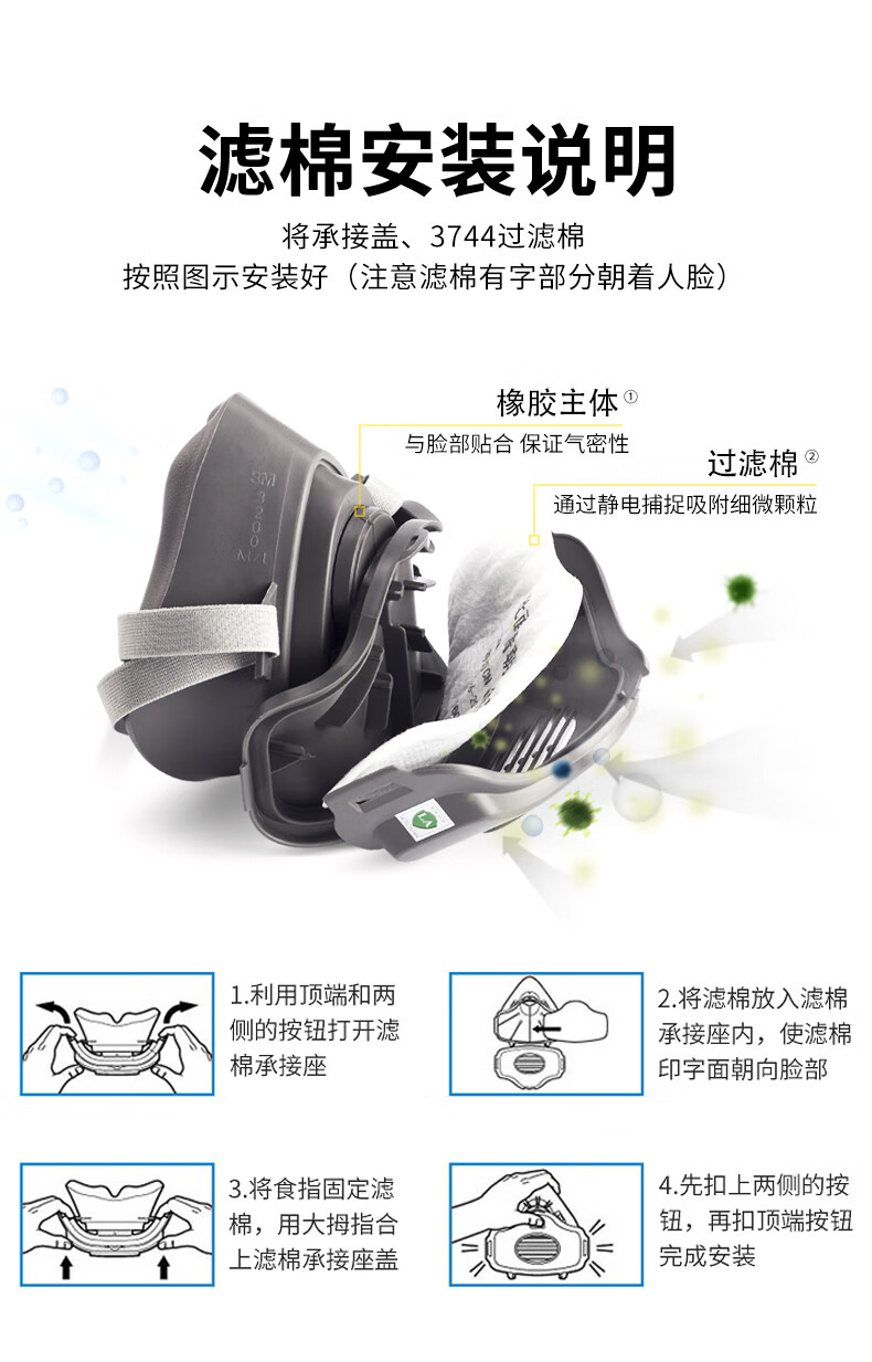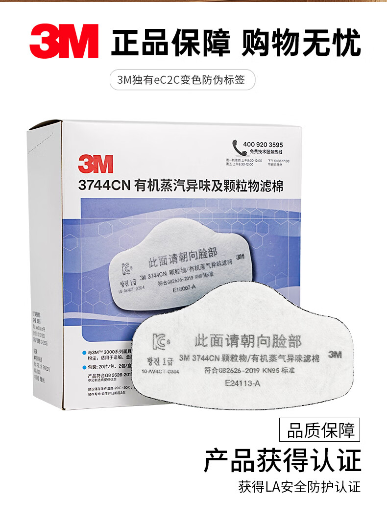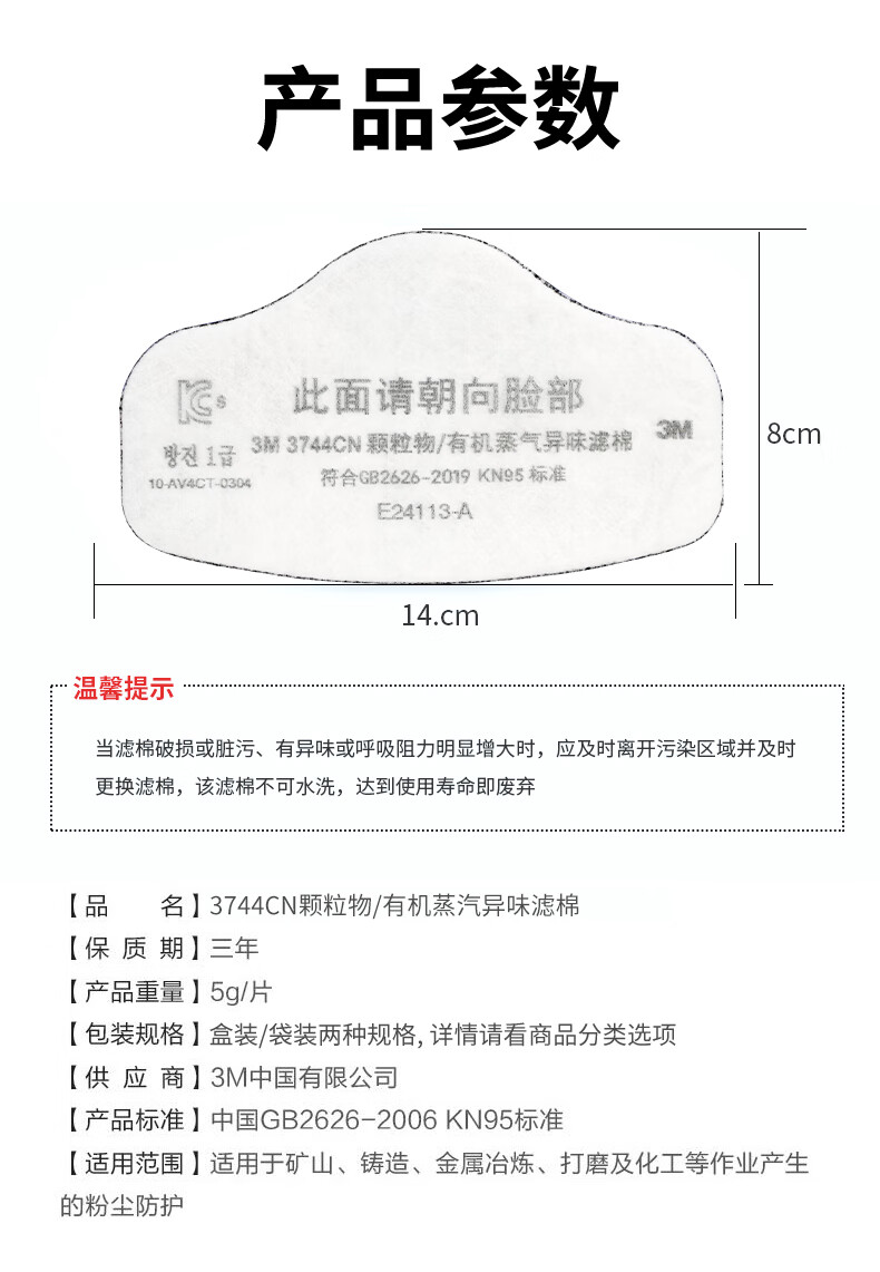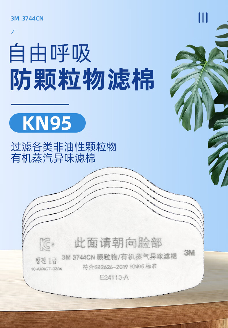 3M KN95有机蒸气异味及颗粒物滤棉 3744CN 符合中国GB2626-2019 KN95标准 1片