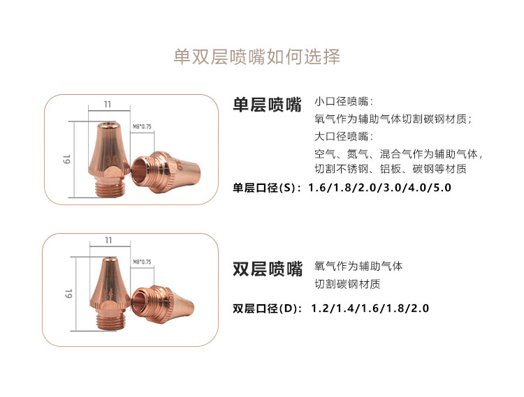 国产通用 激光切割机喷嘴 DY.Z.E0027AA 单层2.0mm M8*0.75 1个