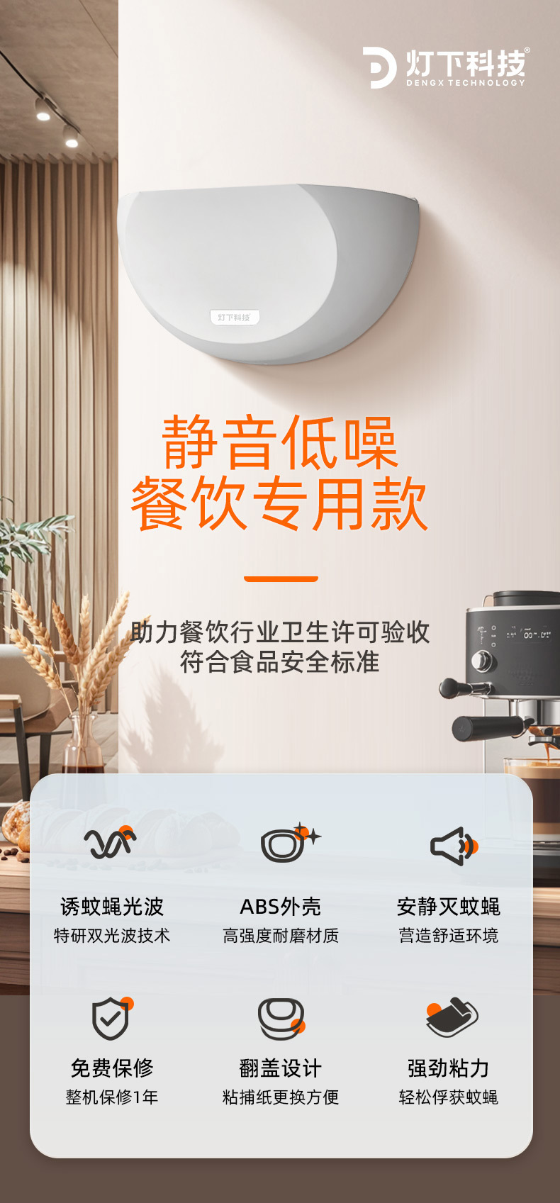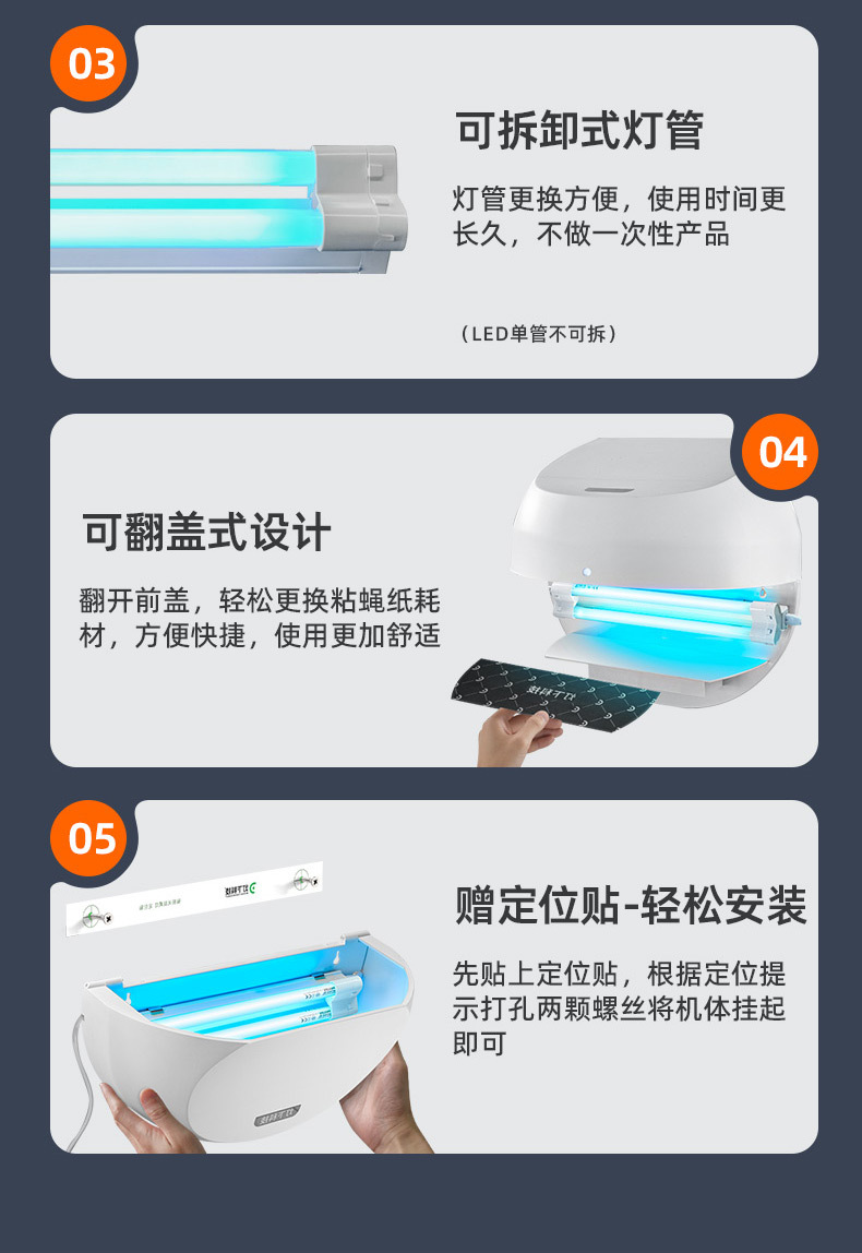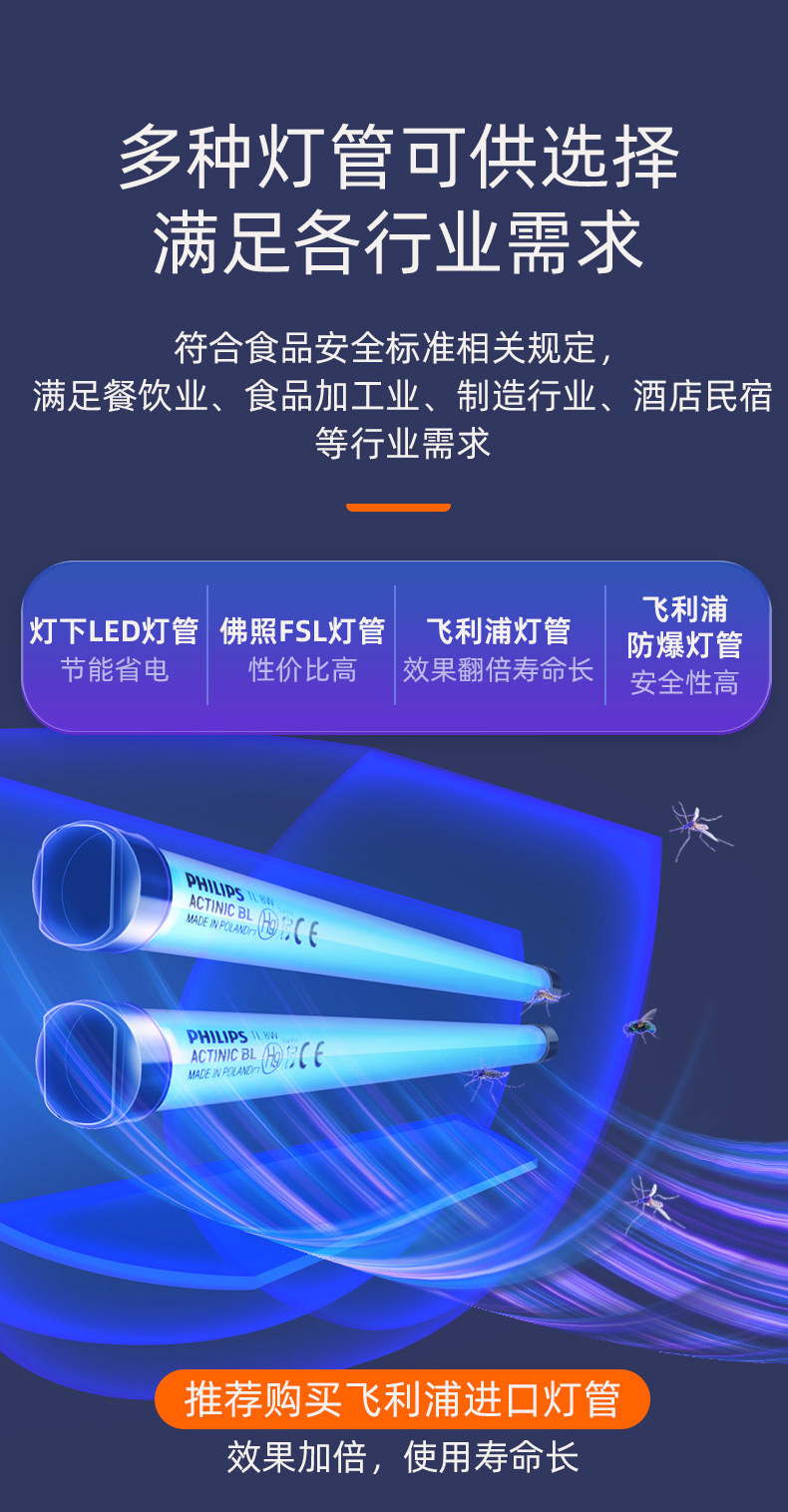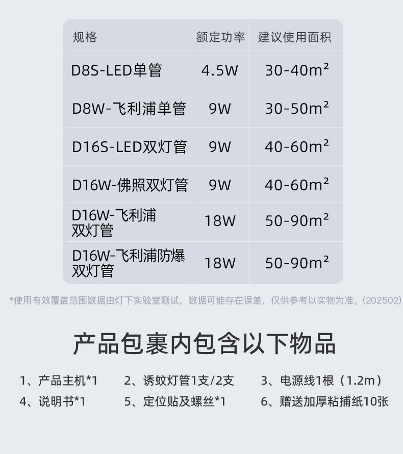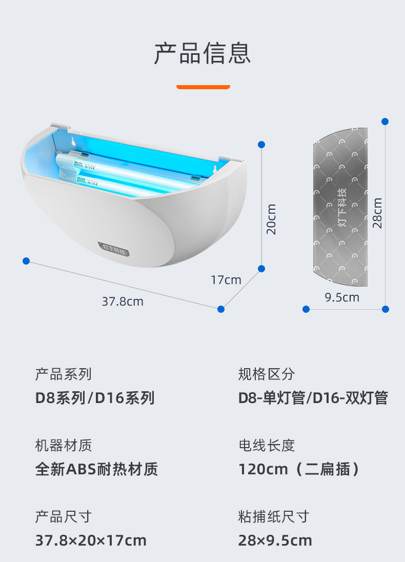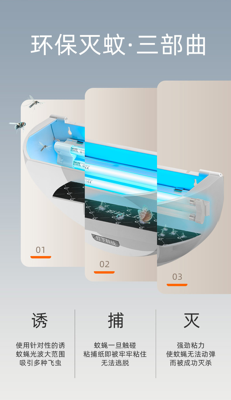 灯下科技 粘捕式灭蚊灯 D8W 飞利浦单管 白色 9W 1个