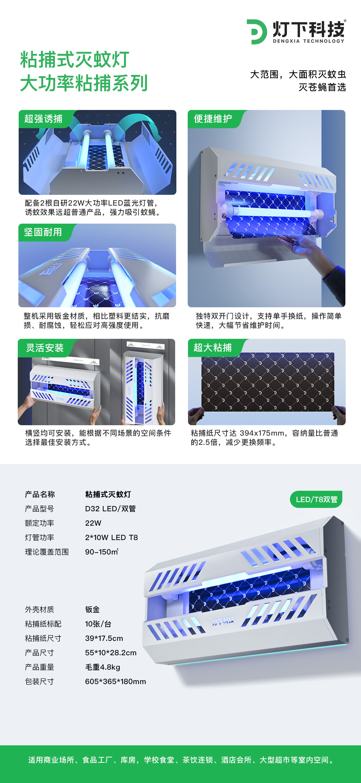 灯下科技 粘捕式灭蚊灯 D32 22W 1个