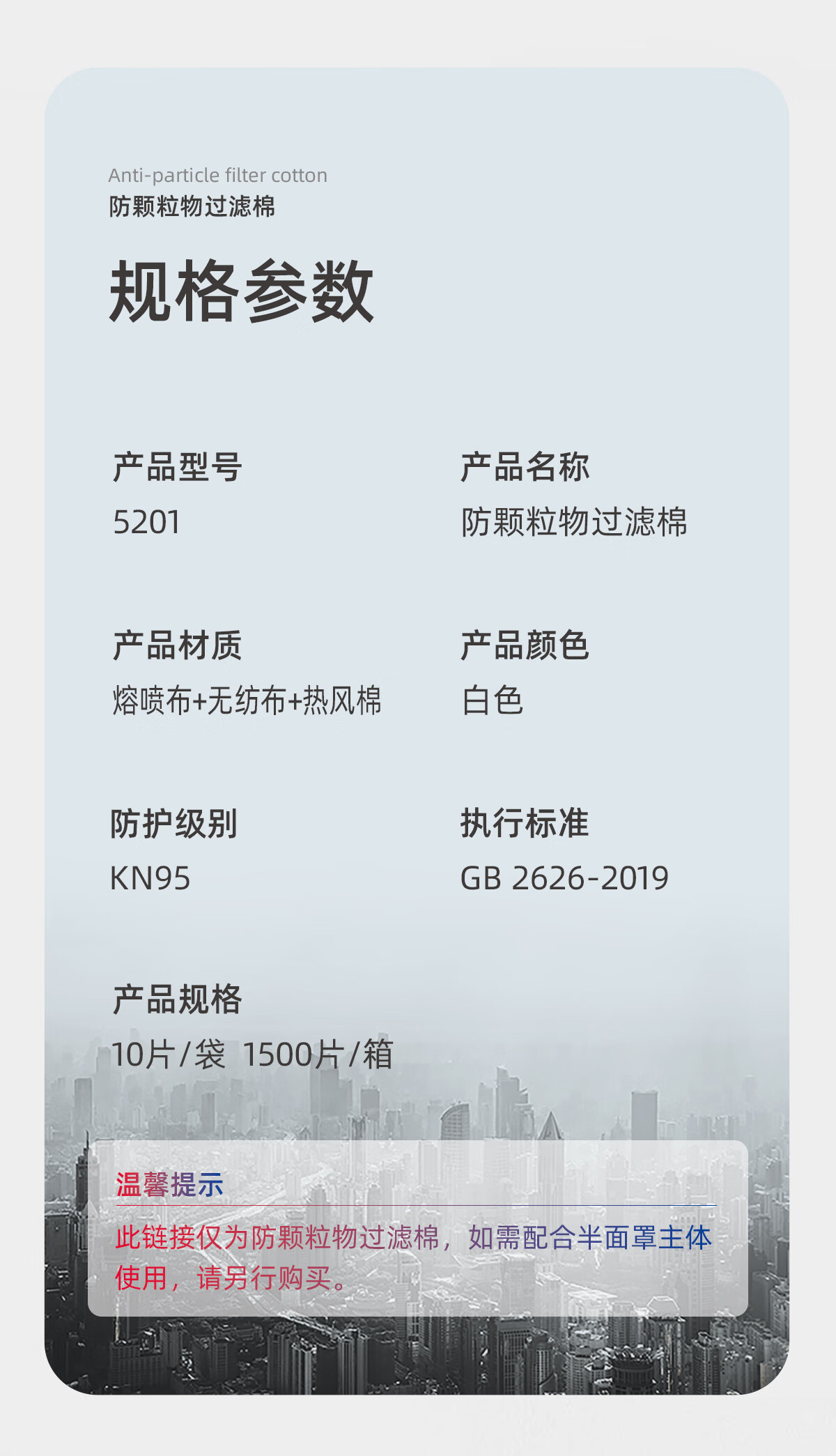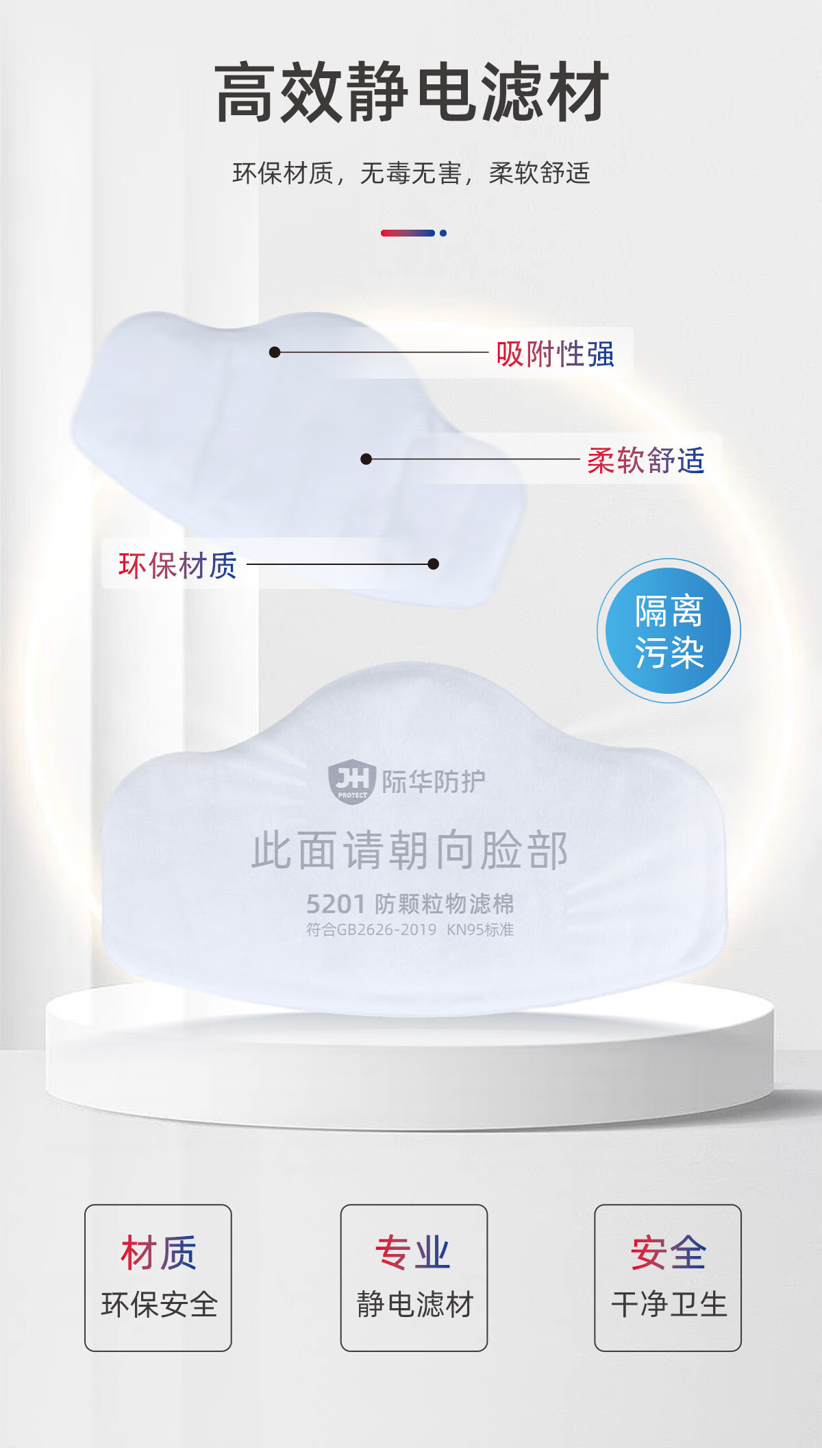 际华防护 KN95防颗粒物滤棉 5201 适配305200面罩 10片 1袋