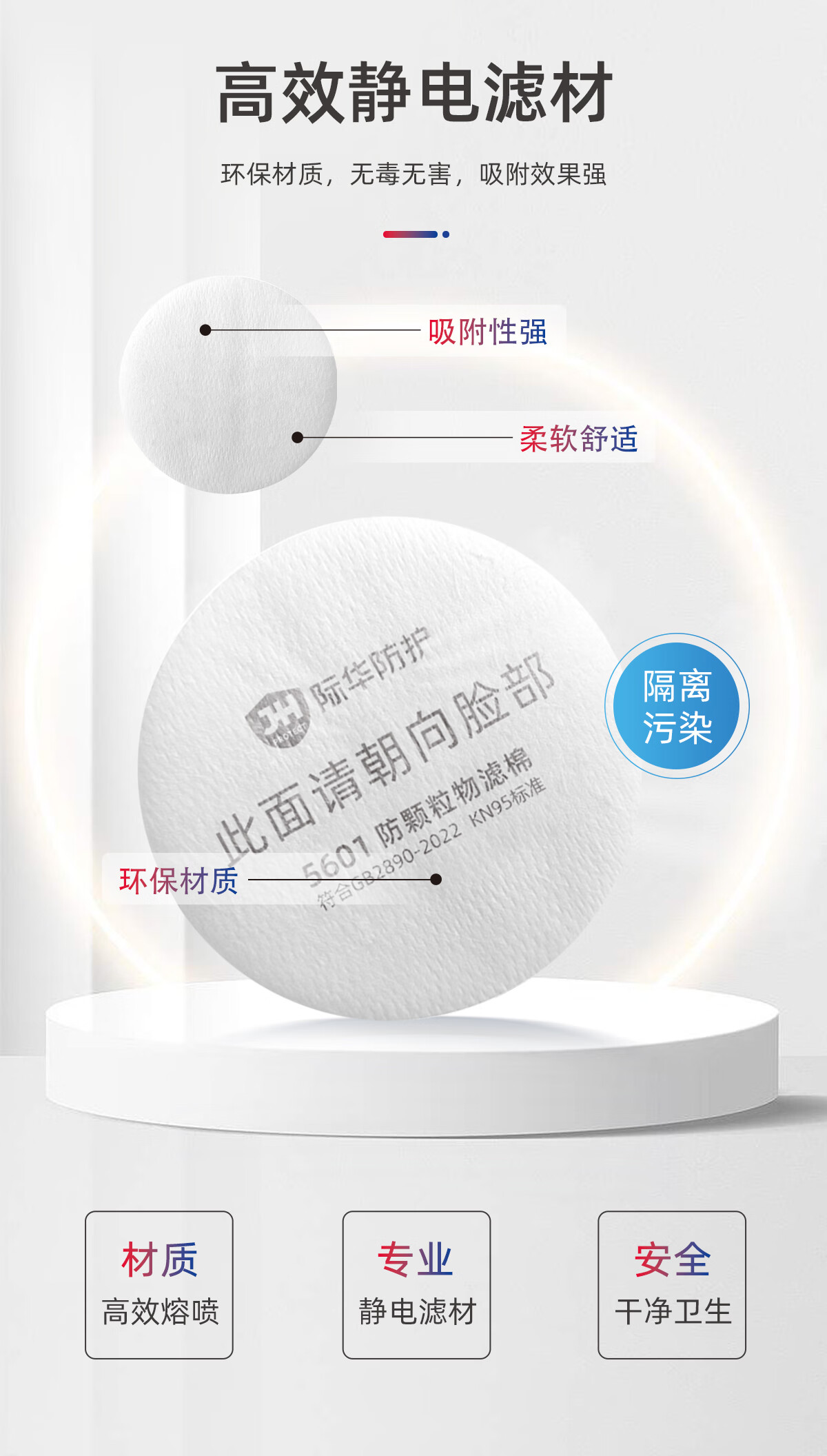 际华防护 KN95圆型滤棉 5601 适配5610滤毒盒 10片 1袋
