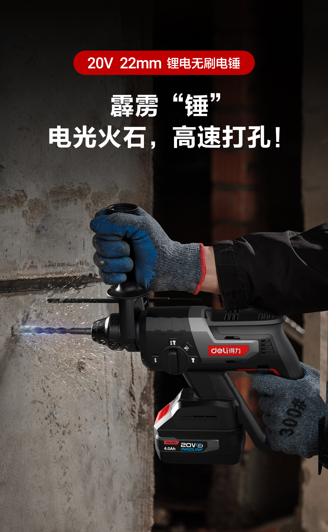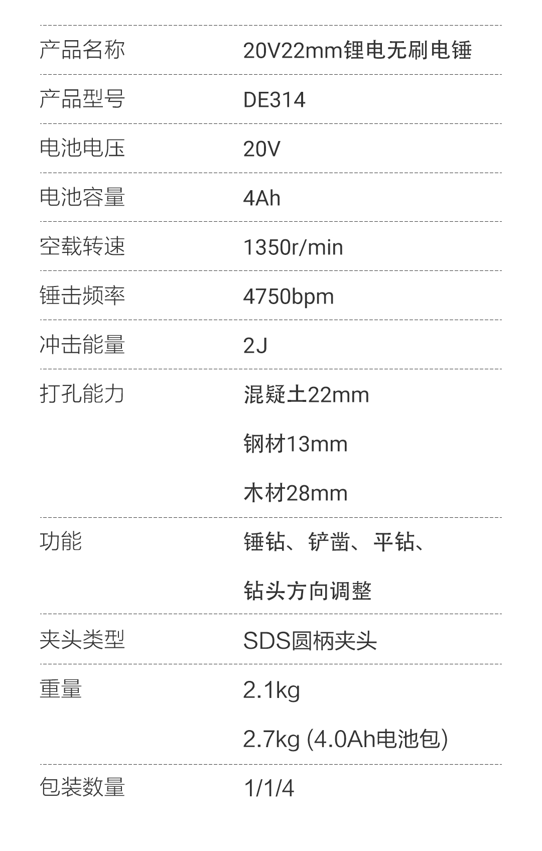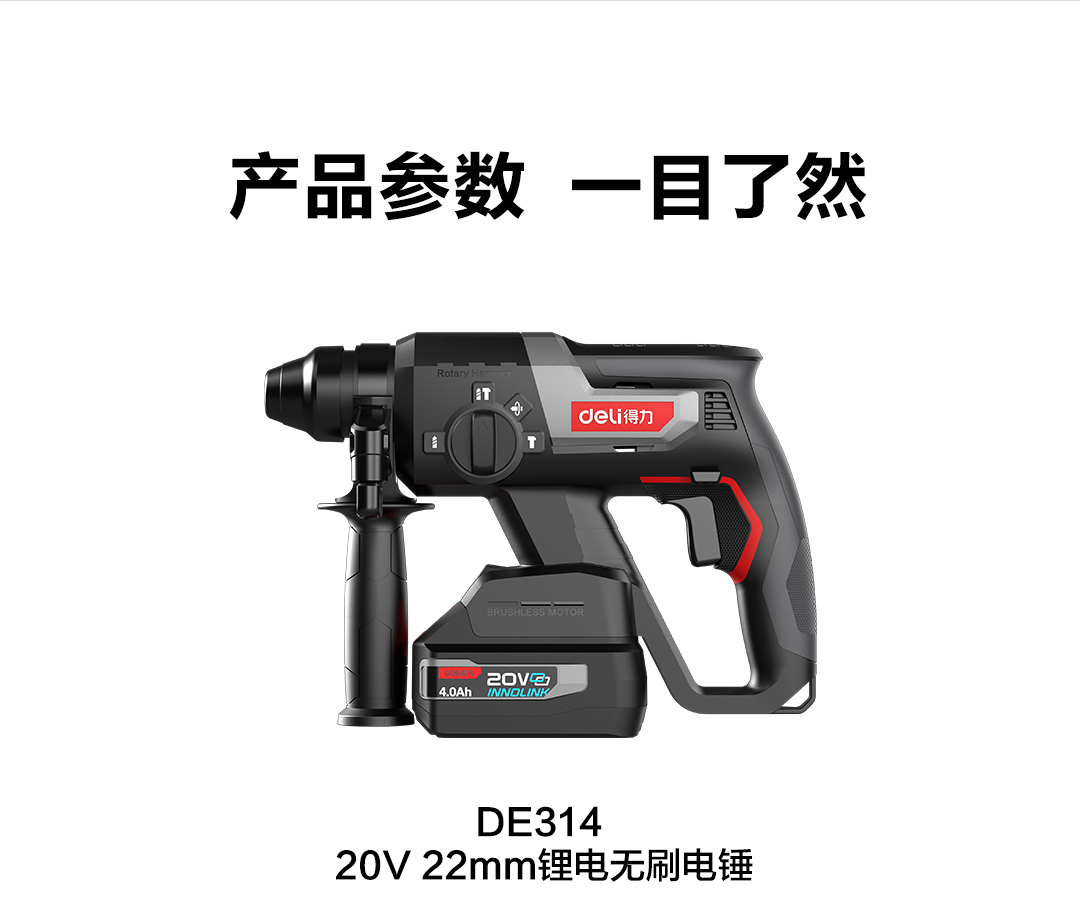 得力 电锤 DE314 20V 4.0Ah 两电一充 1台