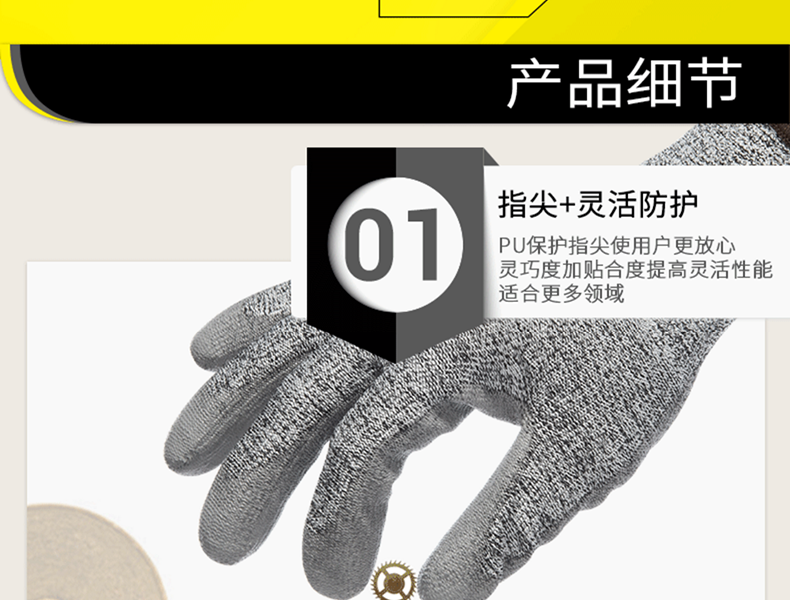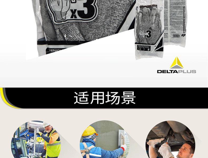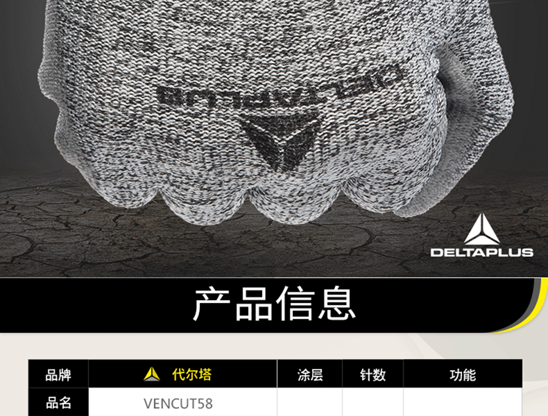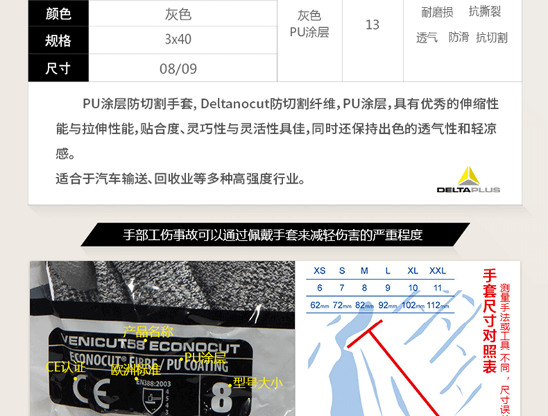 代尔塔 D级PU涂层防割手套 202058 灰色 1双