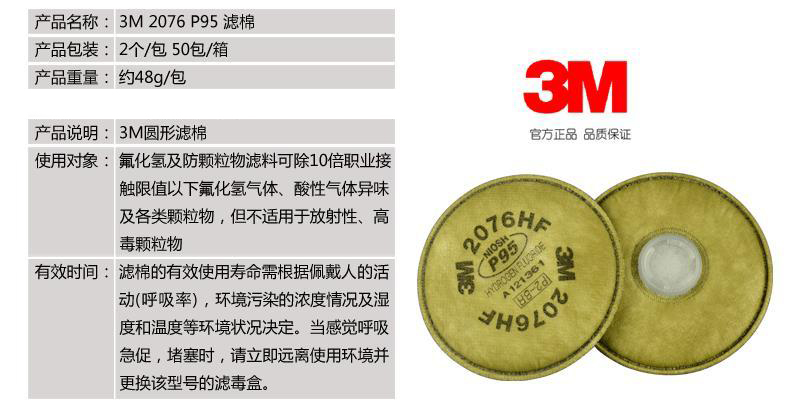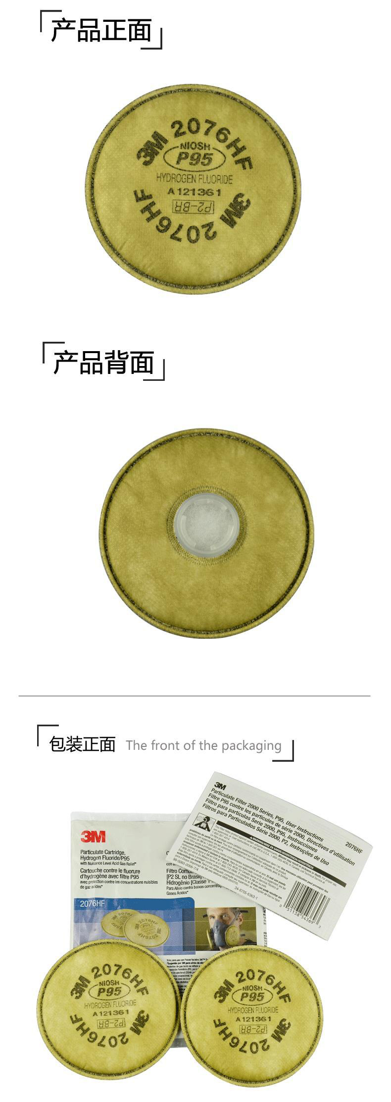 3M 异味颗粒物滤棉 2076CN P95/氟化氢/酸性气体 1片