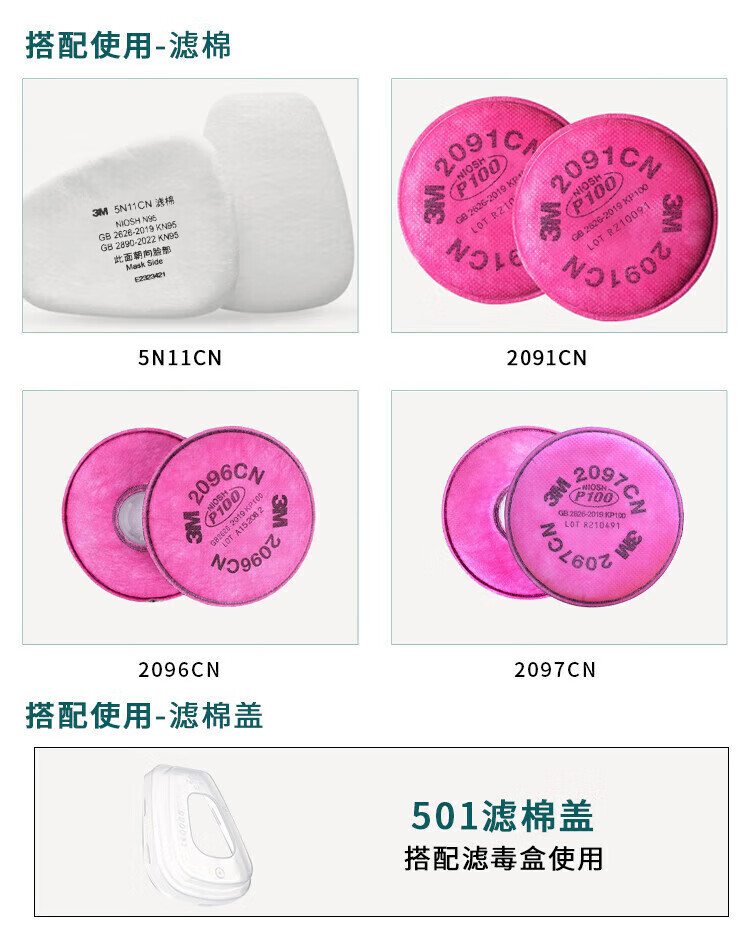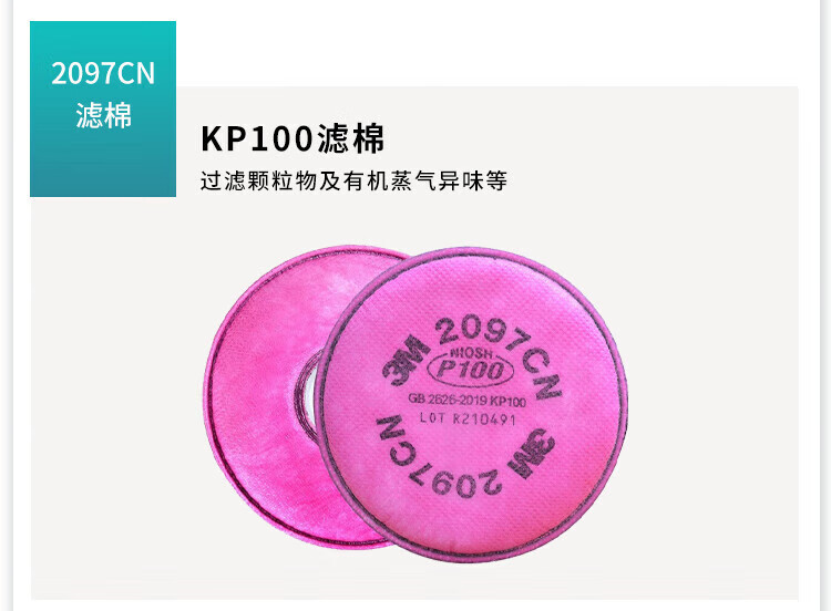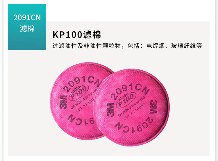 3M 颗粒物滤棉 2091CN 标准:美国NIOSH P100 1片