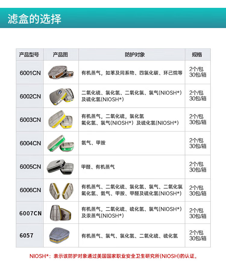 • 标准标准:美国NIOSH P100