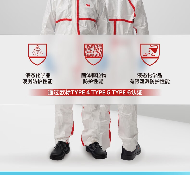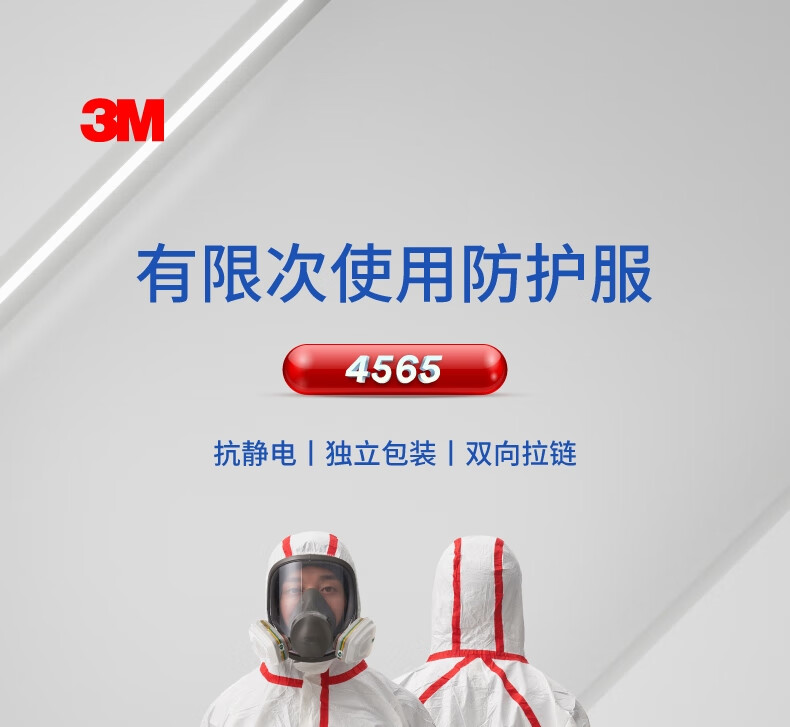 3M 带帽红色胶条防护服 4565 白色 L 1套