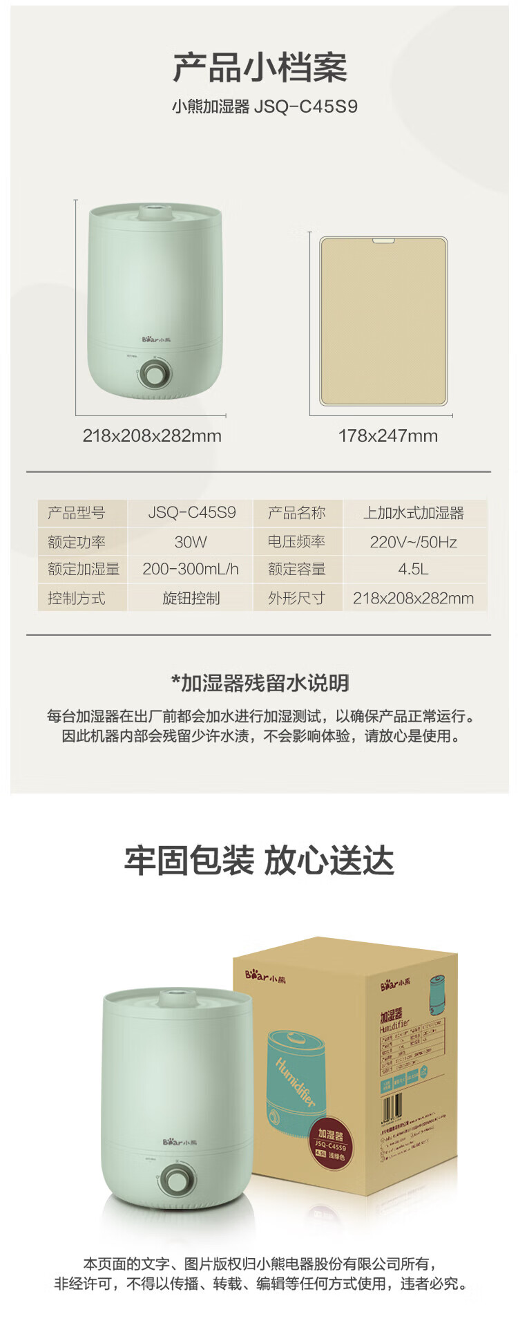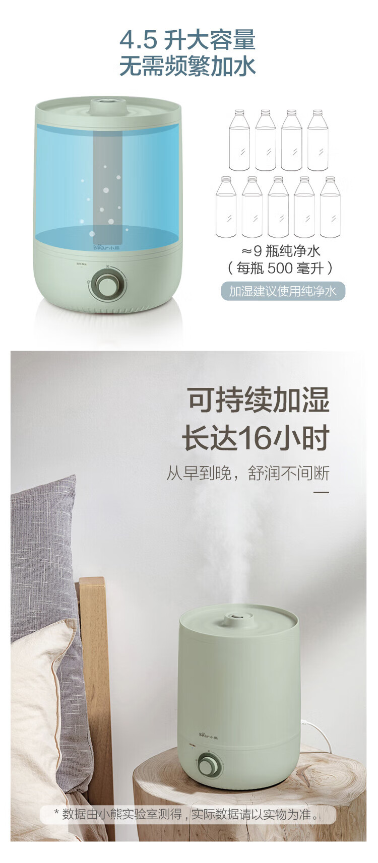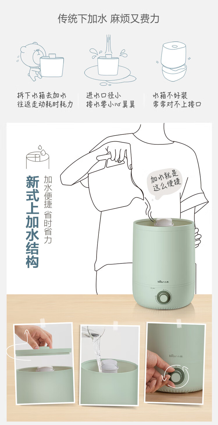 小熊 便捷上加水设计加湿器 JSQ-C45S9 绿色 4.5L 1台