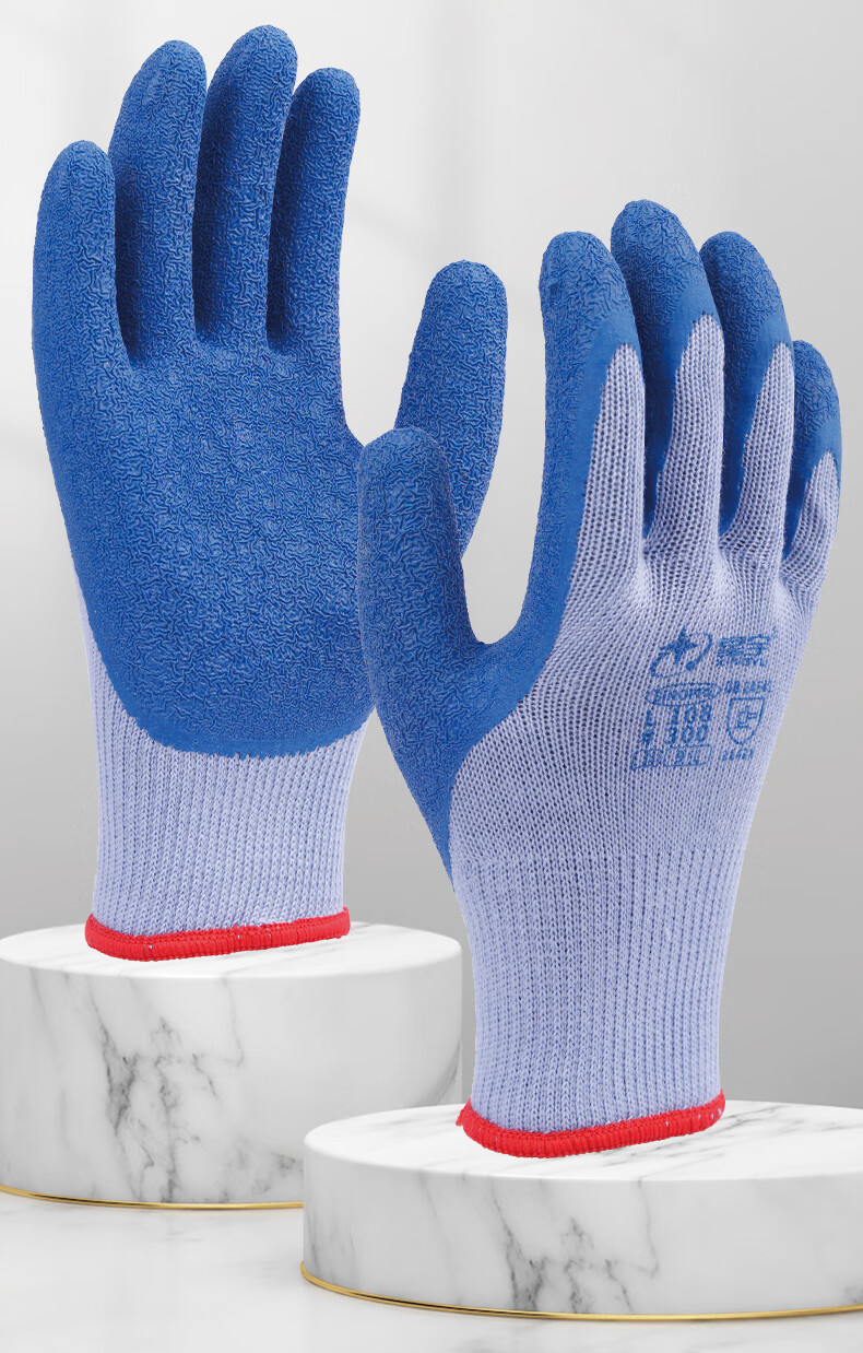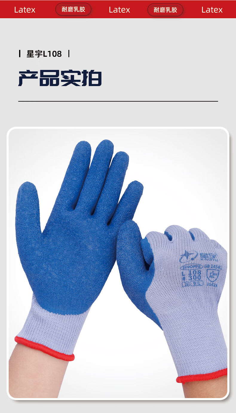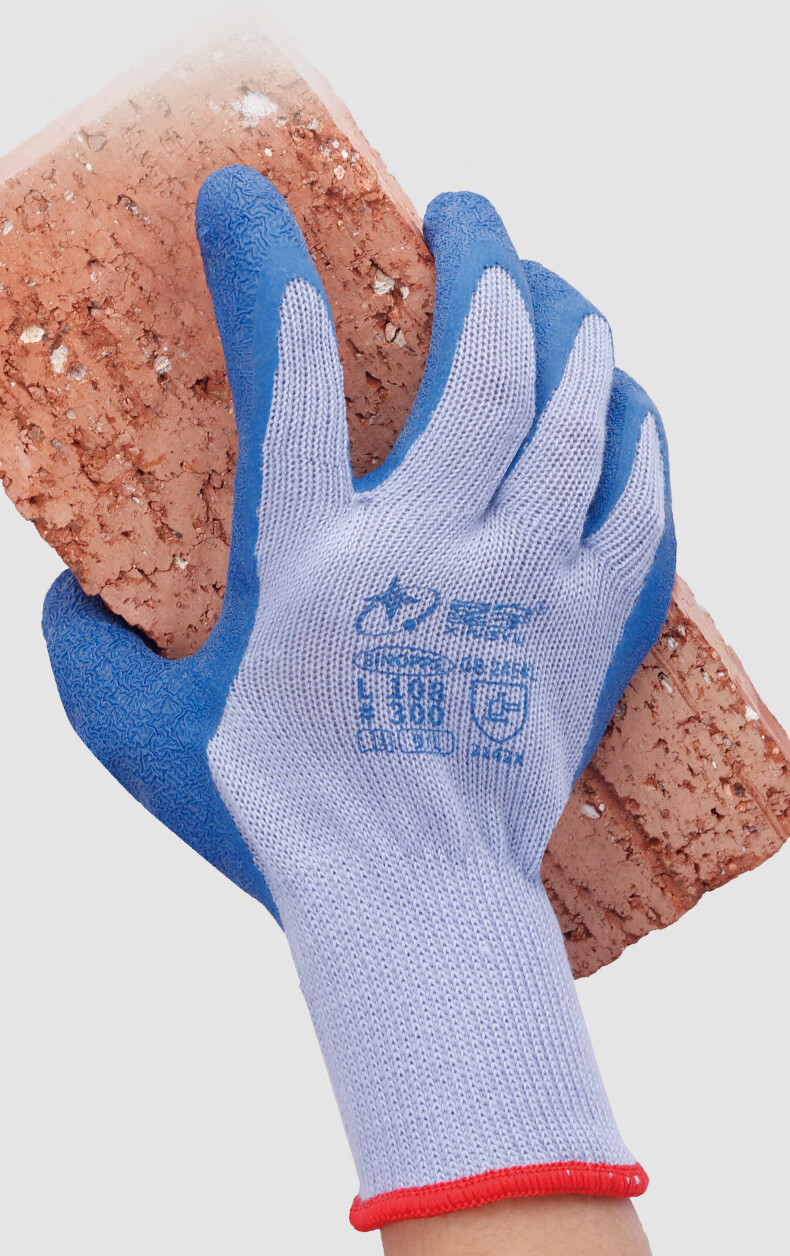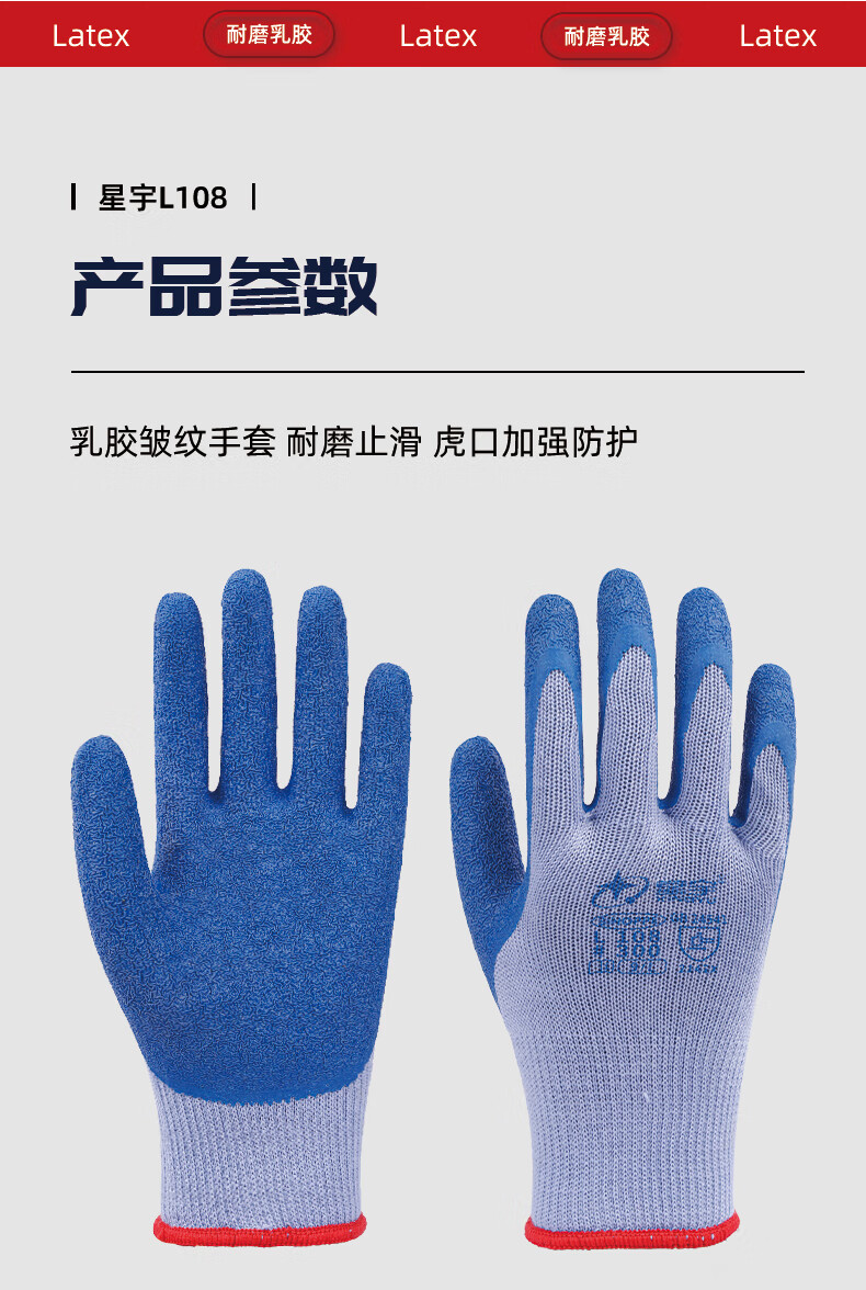 星宇 300号皱纹手套 L108 灰纱蓝胶 1双