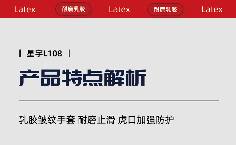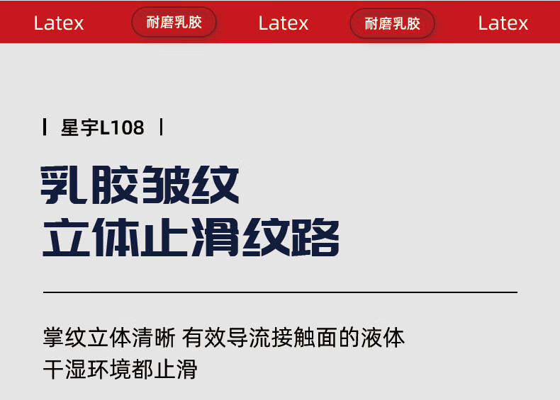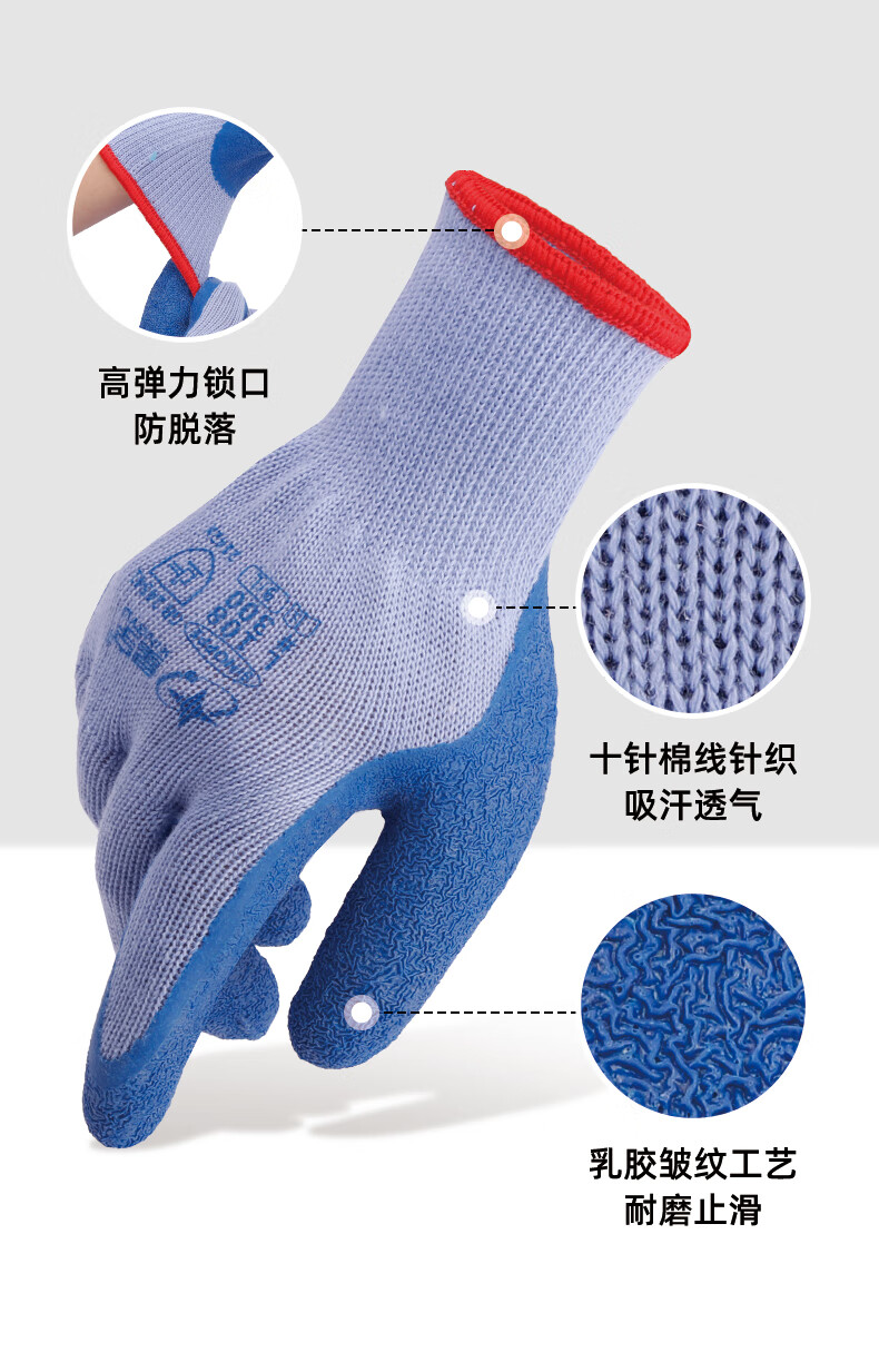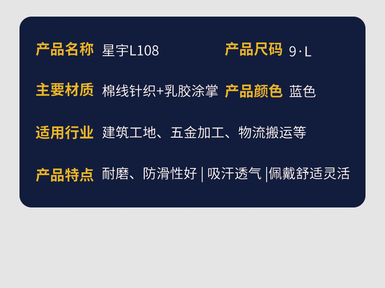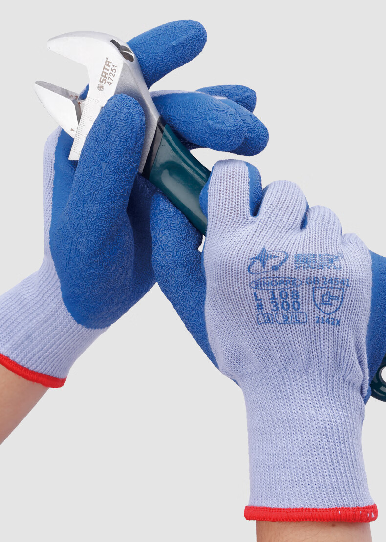 星宇 300号皱纹手套 L108 灰纱蓝胶 1双