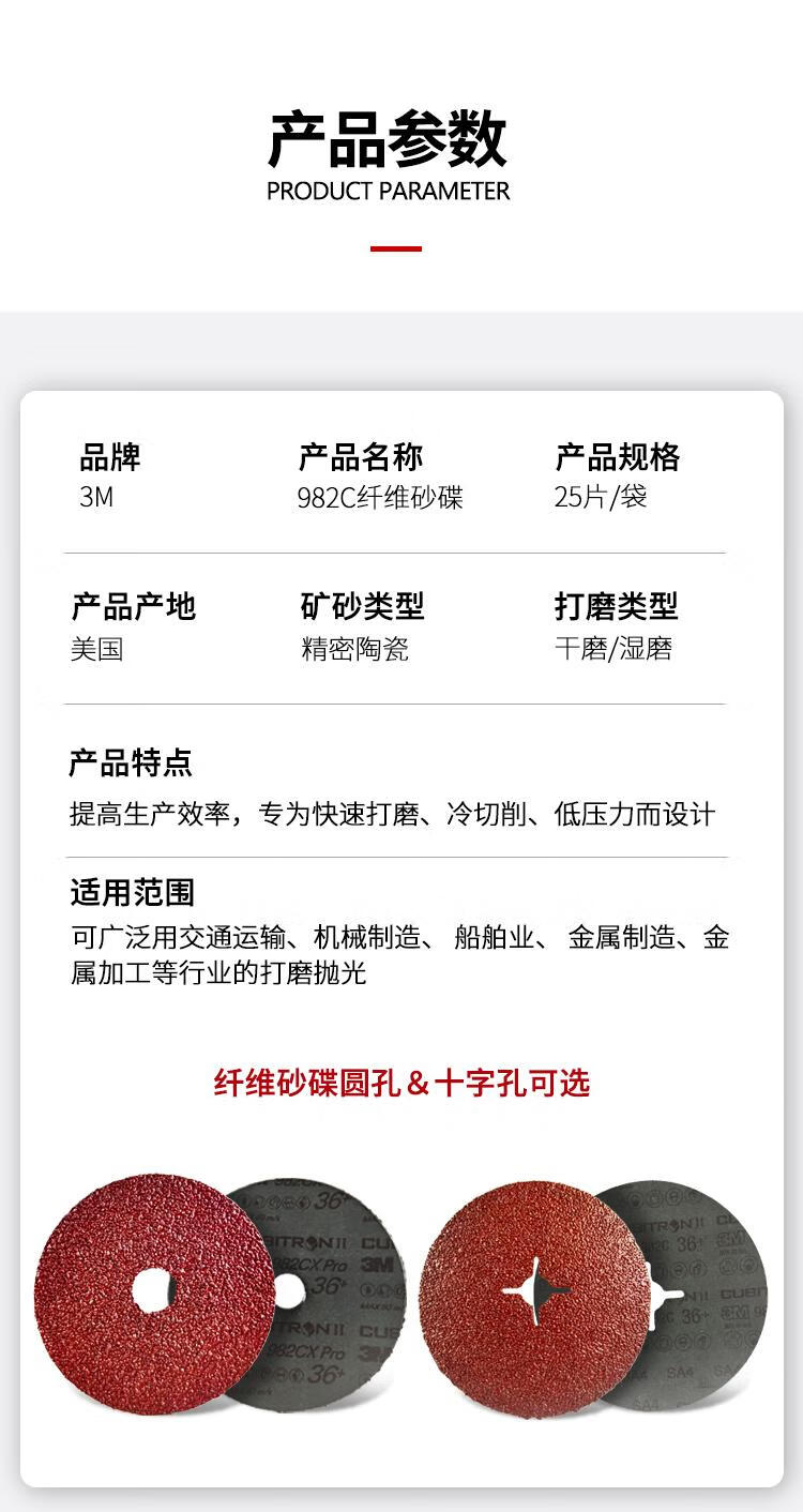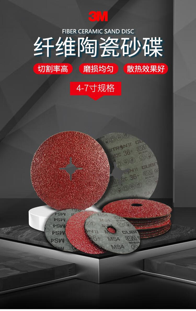 3M 十字孔纤维砂碟 982C 100*16mm*394EQ 80目 1片