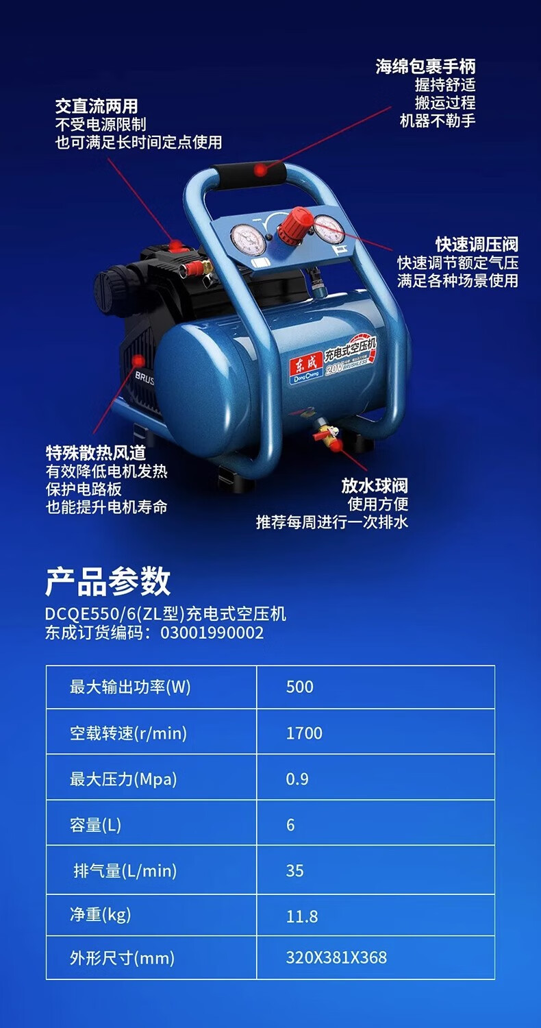 东成 交/直流两用空压机 DCQE550/6ZL 20V 裸机 1台