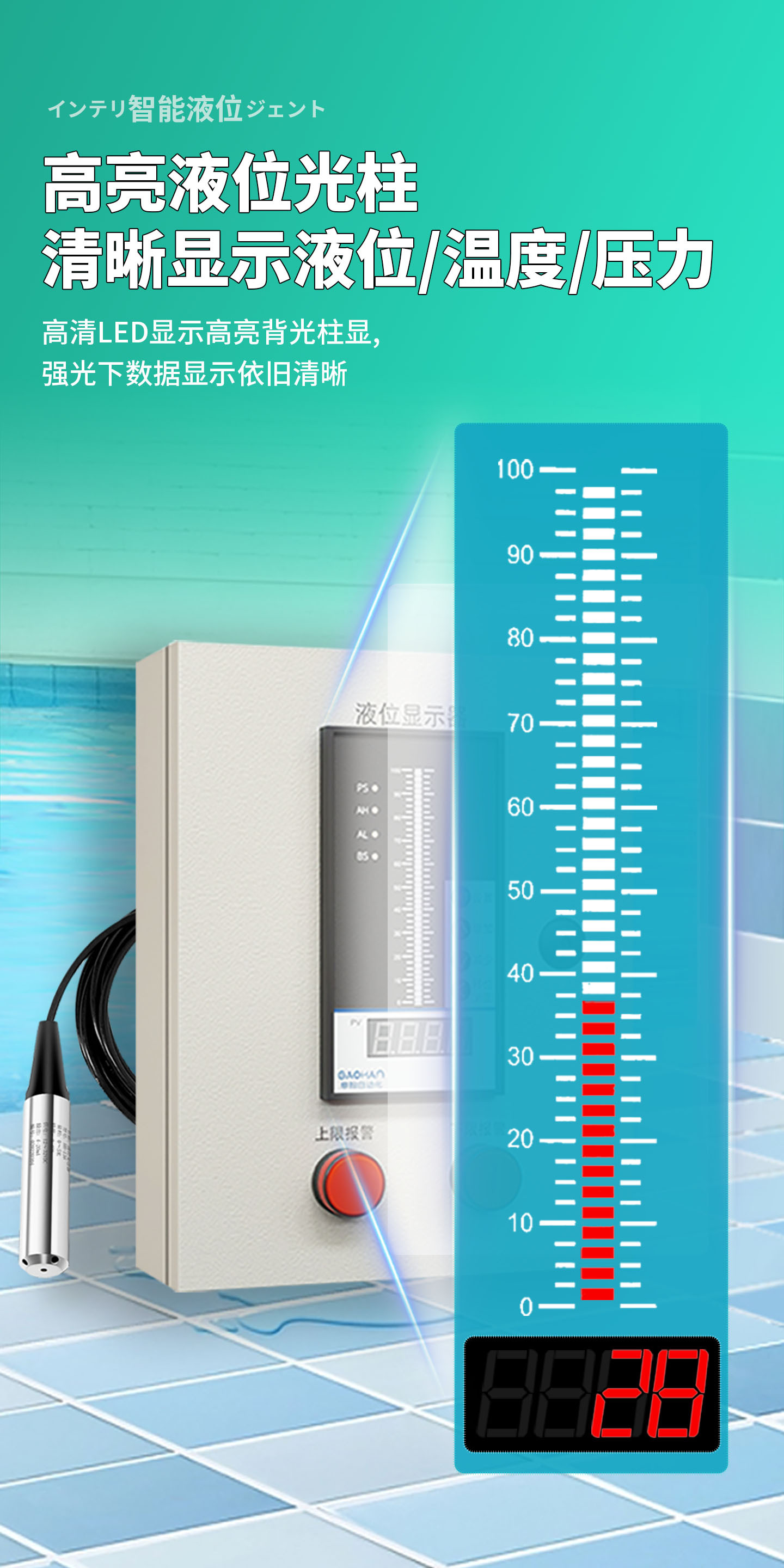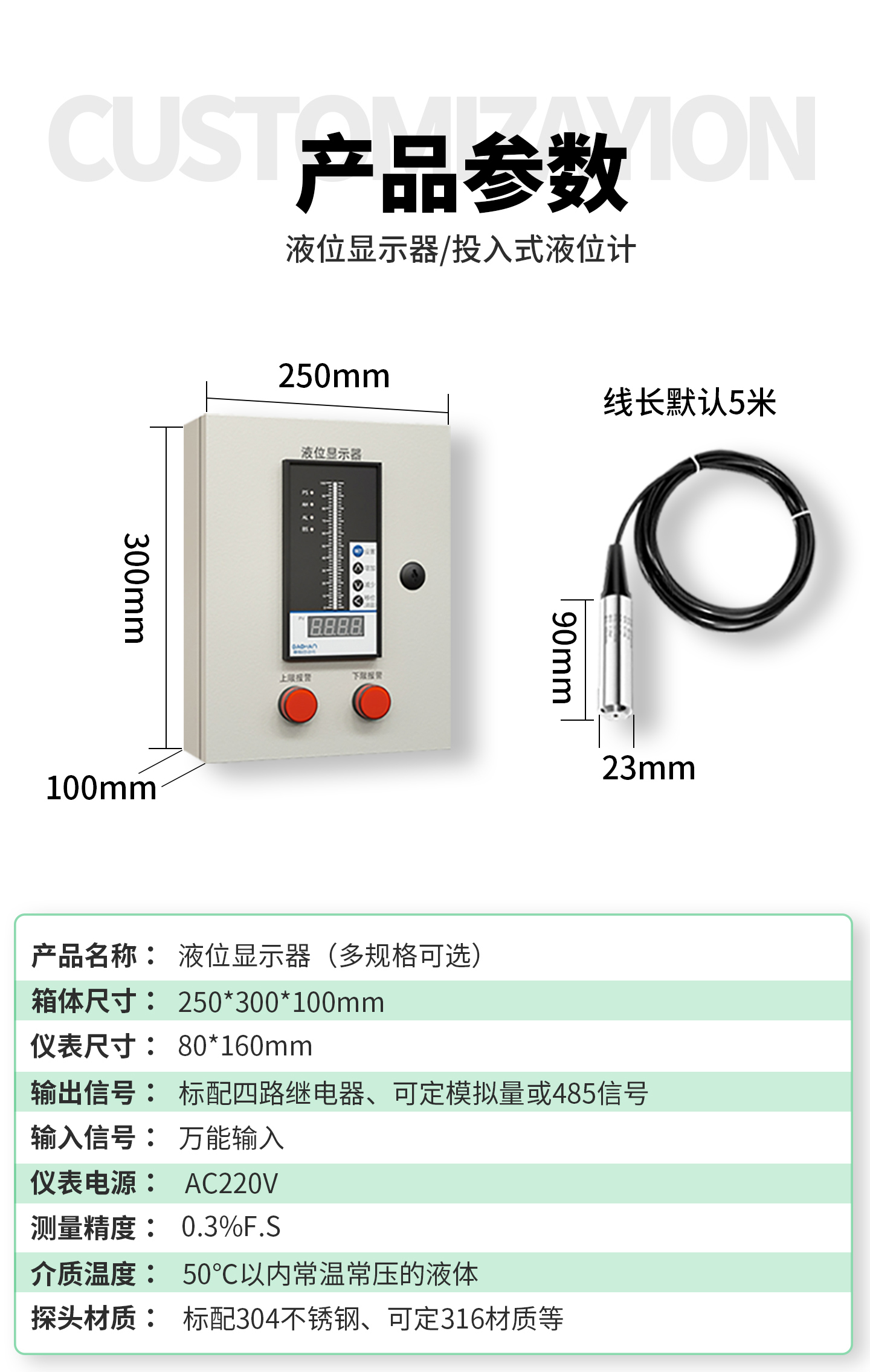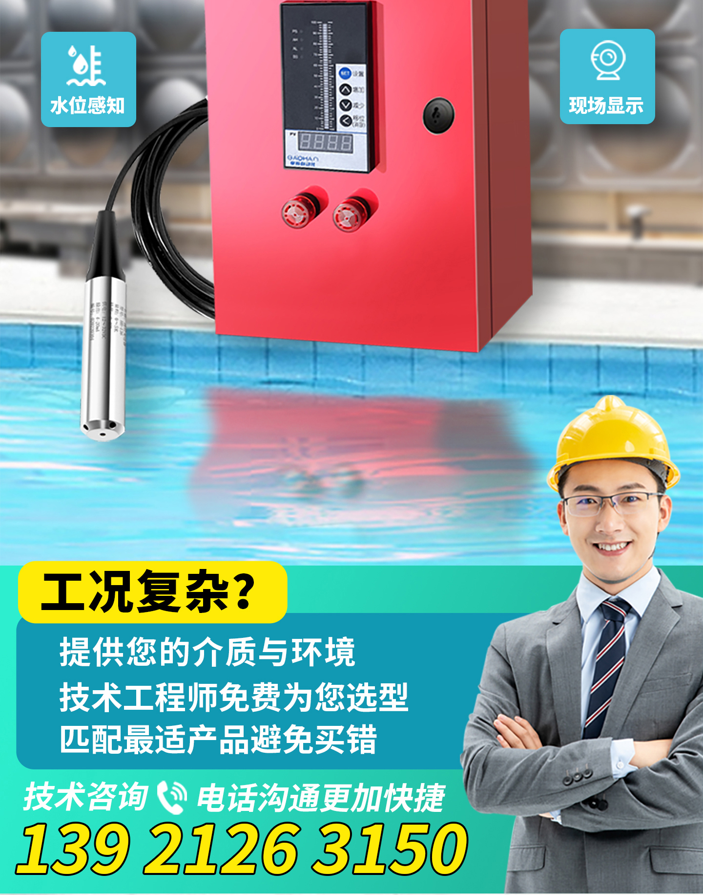 云翼测能 消防水池水箱 双路显示箱+2个传感探头 1套