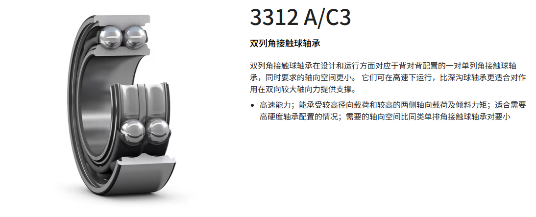 斯凯孚 双列角接触球轴承 3312 A/C3 1个