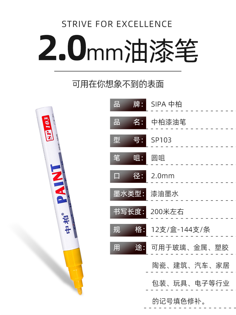 中柏 油漆笔 SP103 红色 2.0mm 1个