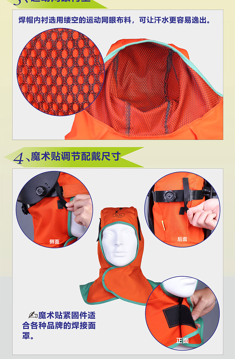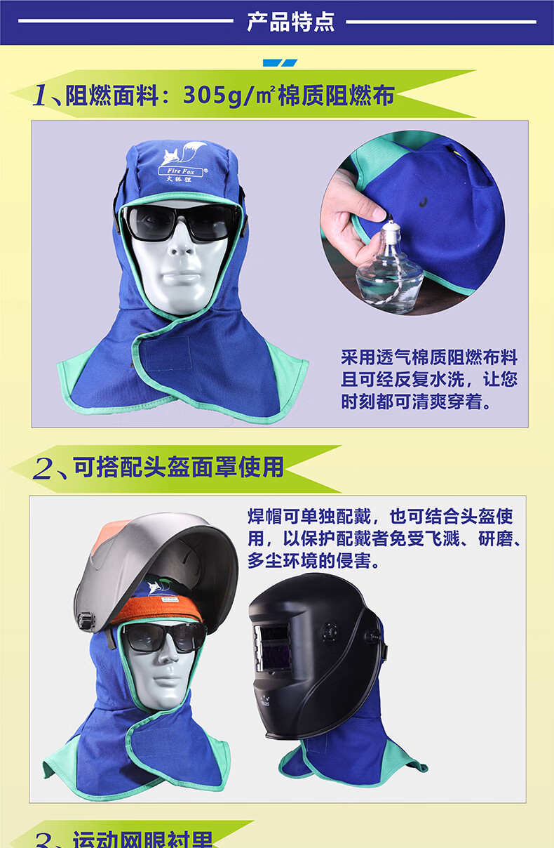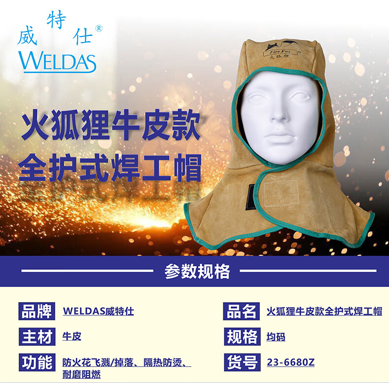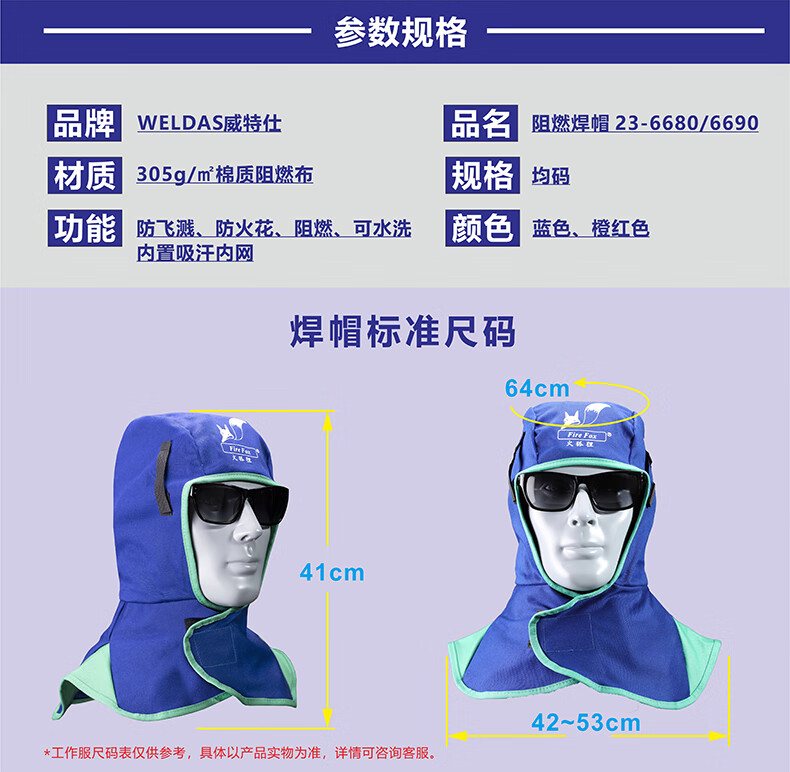 威特仕 全护式防火阻燃焊帽 23-6680 蓝色 XL码 1顶