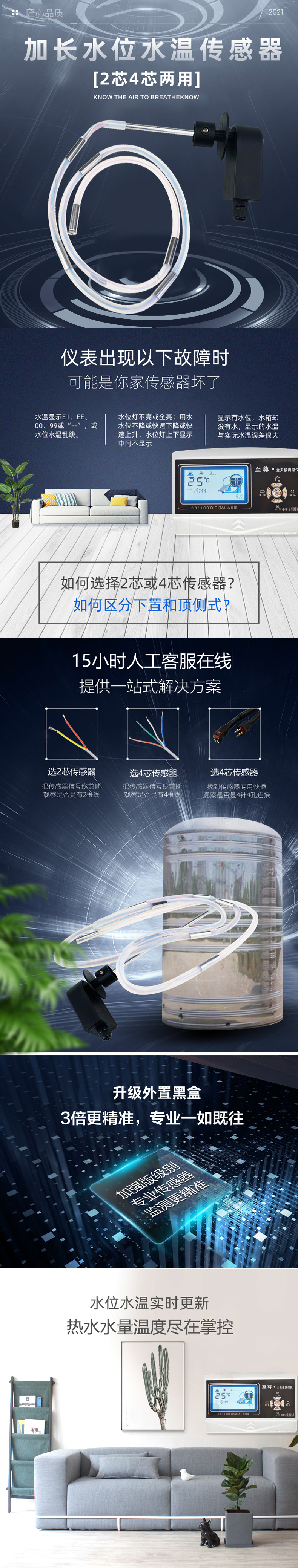 浙雨 水箱温度传感器 3米-4芯带线半米 1根