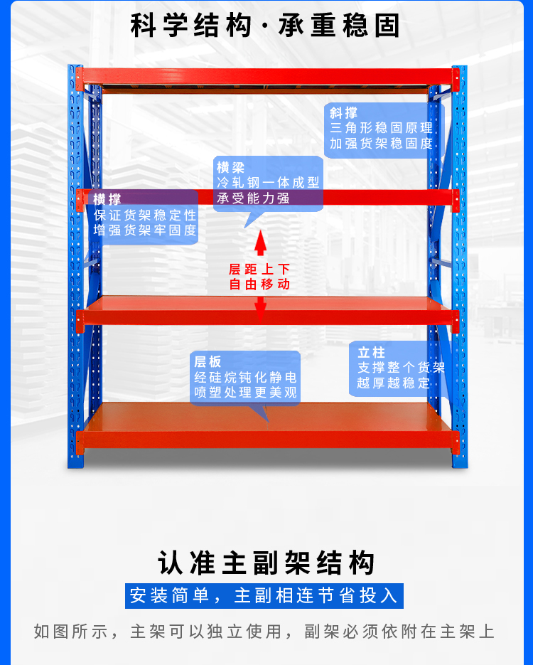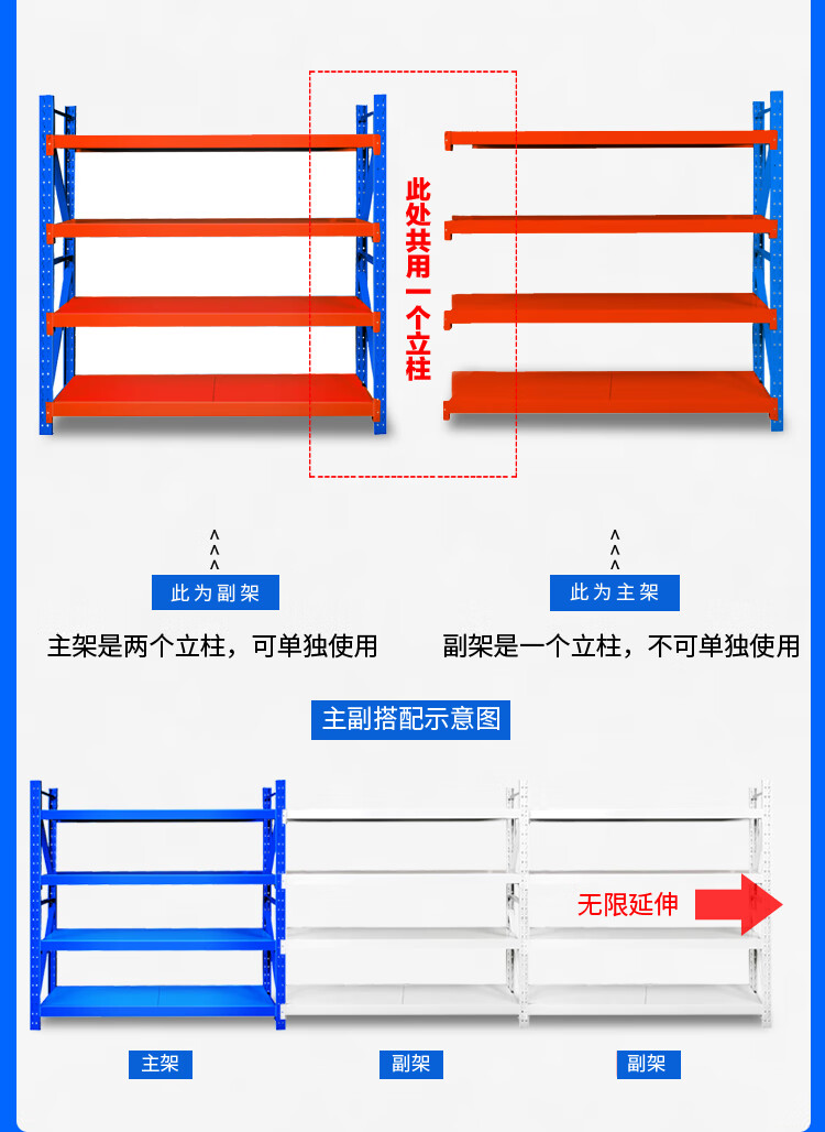 国产通用 定制主架货架 蓝+橘 内长250*100*200cm 下单联系客服 1个