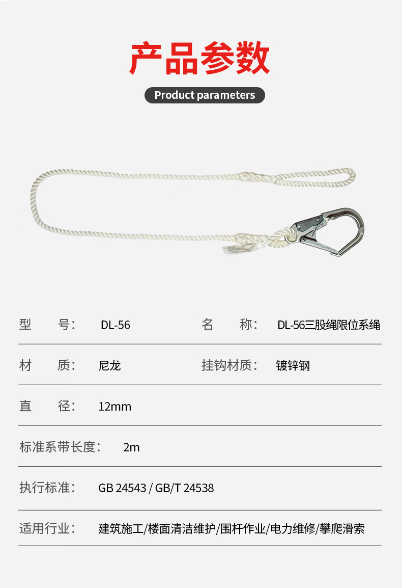霍尼韦尔 限位系绳 DL-56 尼龙 直径12mm 标准系带长度2m 1条