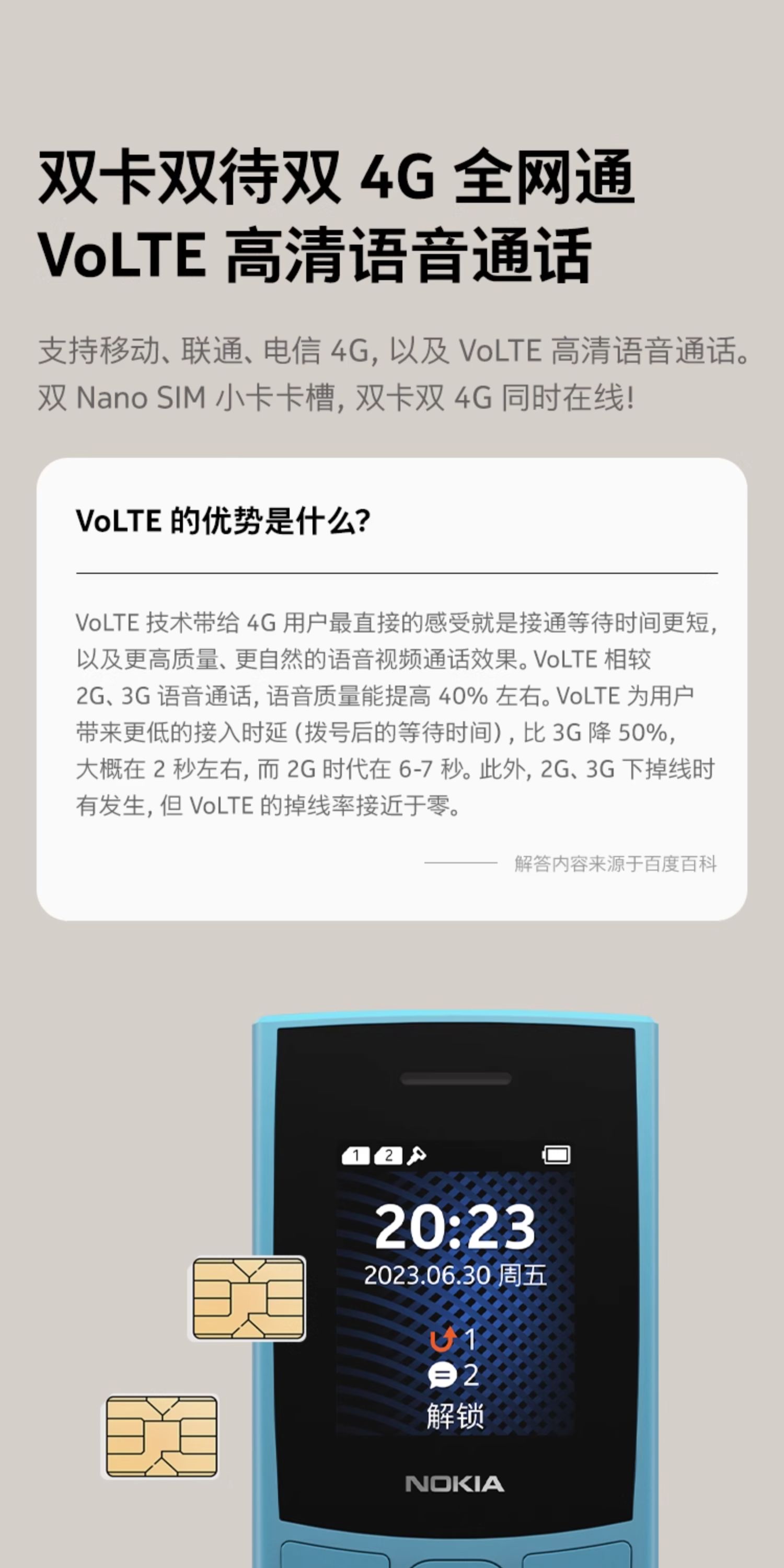 诺基亚 老年机 105 蓝色 4G全网通 1个