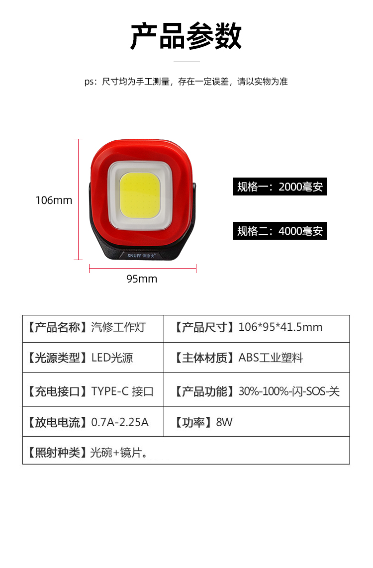 斯奈夫 多功能工作灯 S-202 强光1000流明 续航6-24小时 1个