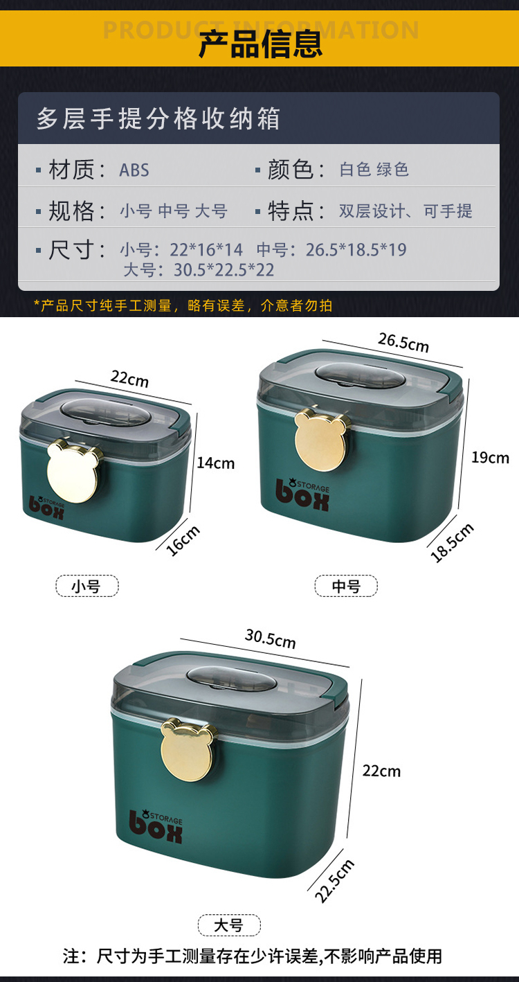 稳斯坦 防夹存储箱 W5362 中号 绿色 26.5*18.5*19cm 1个