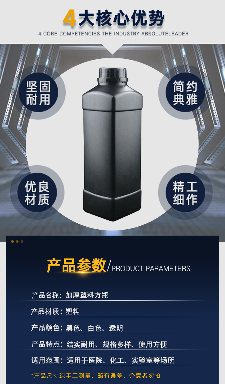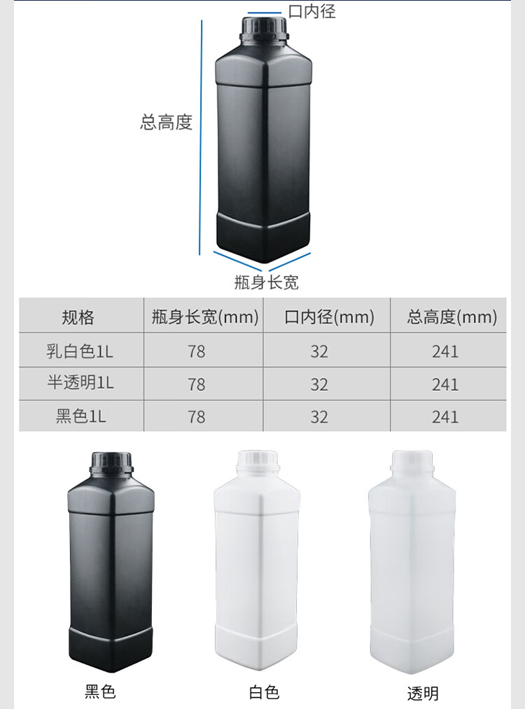 金诗洛 加厚塑料方瓶 K5244 乳白色 1L 1个