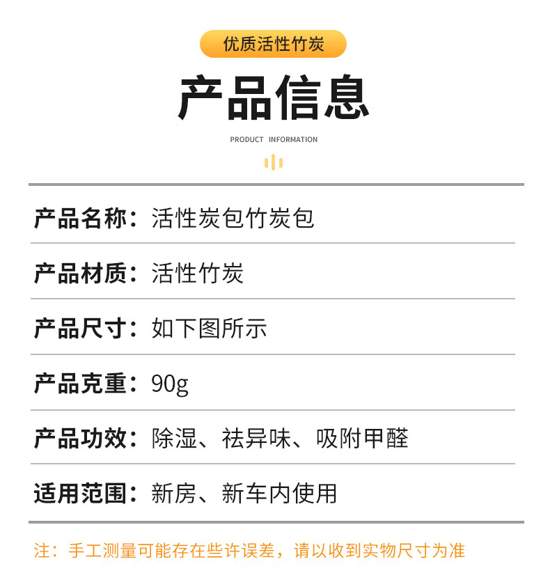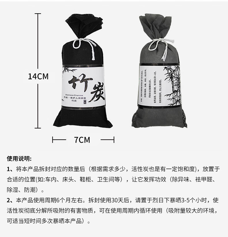 赫思迪格 活性炭包竹炭包 JG-1184 黑色 20个 1包