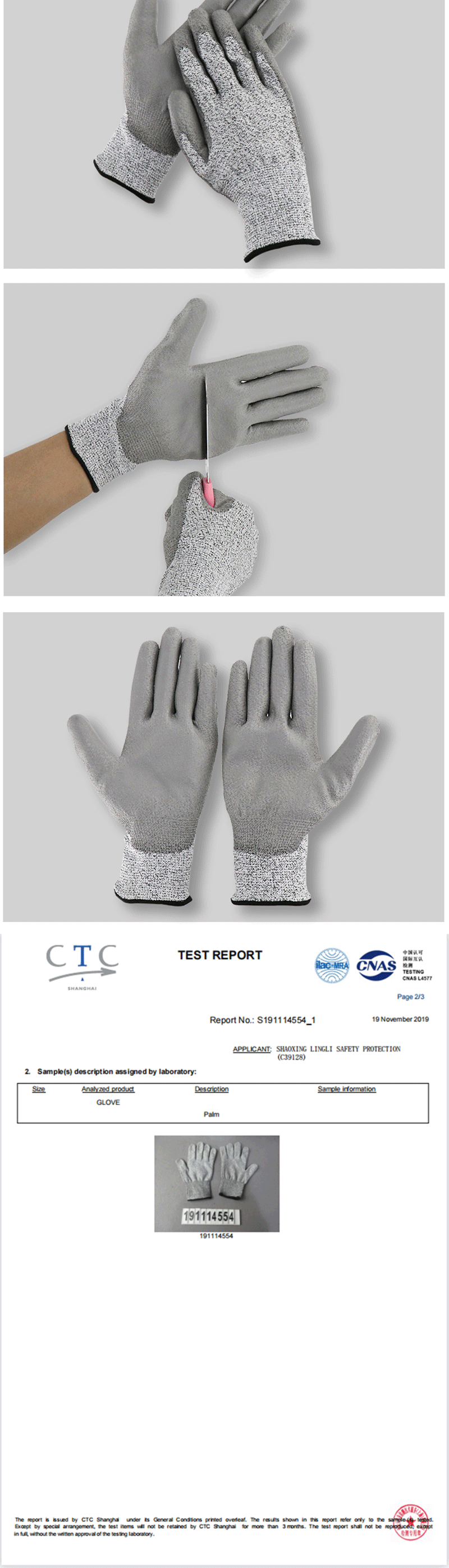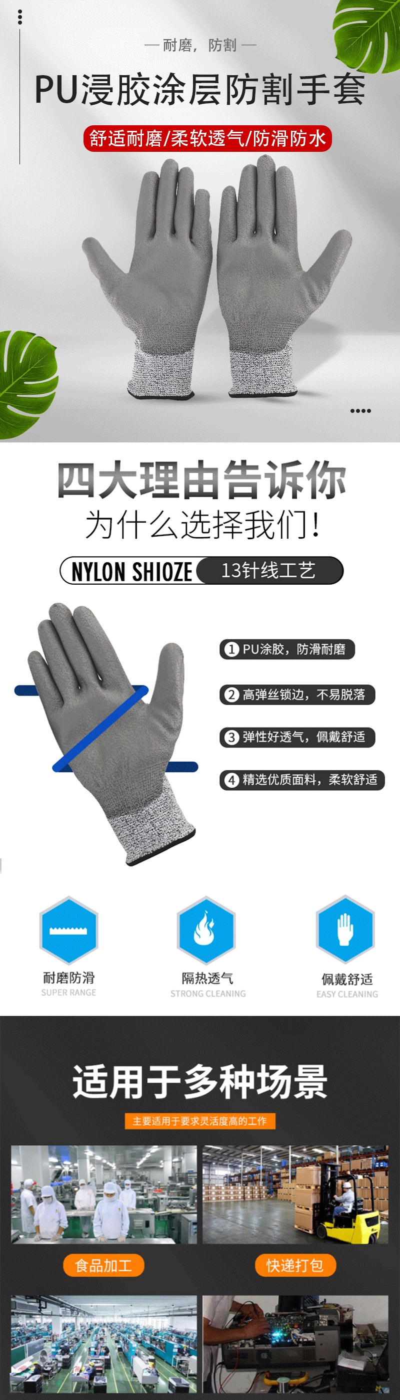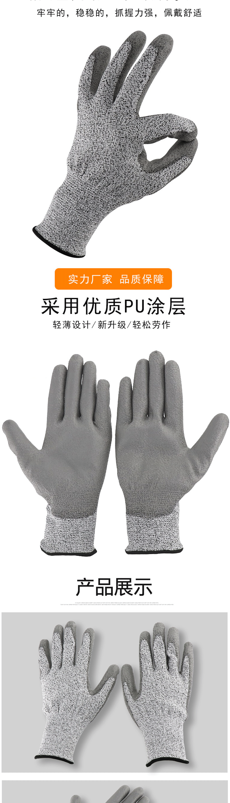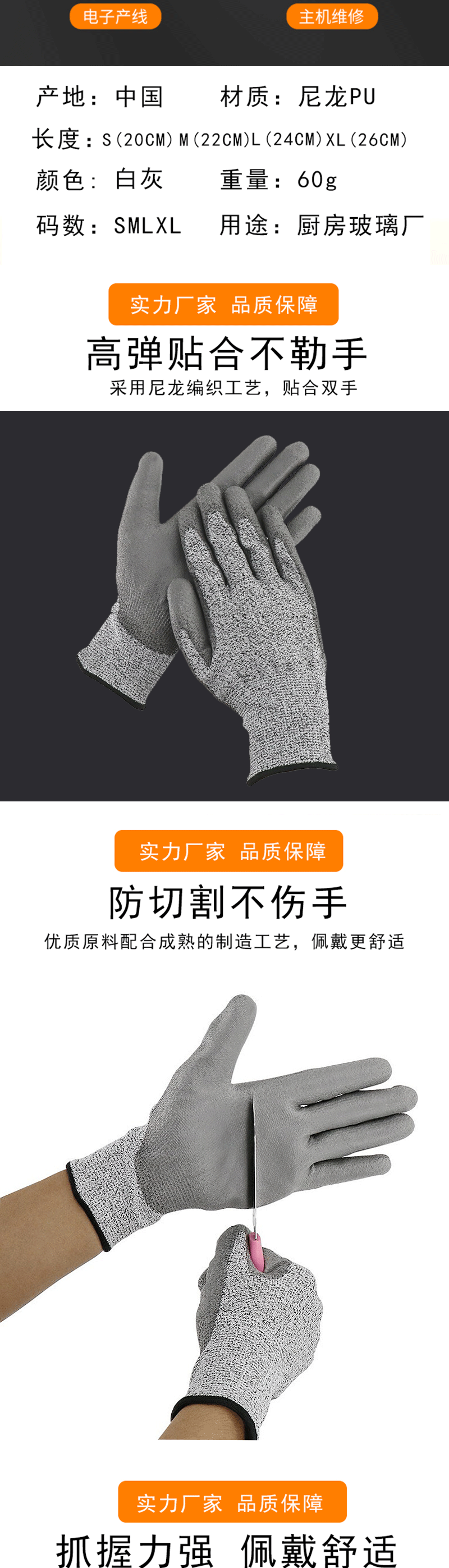 冰禹 防割手套 BYsp-04 白灰 S码 1双