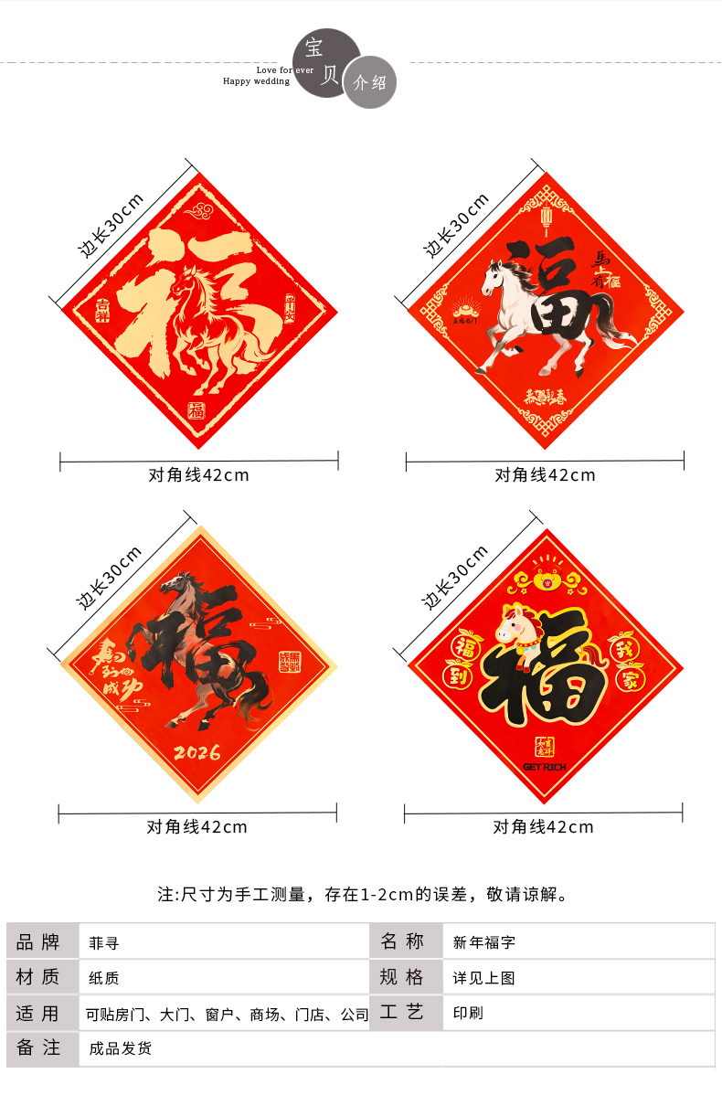 国产通用 福字门贴 30#吉祥如意_送点胶 2张 1件