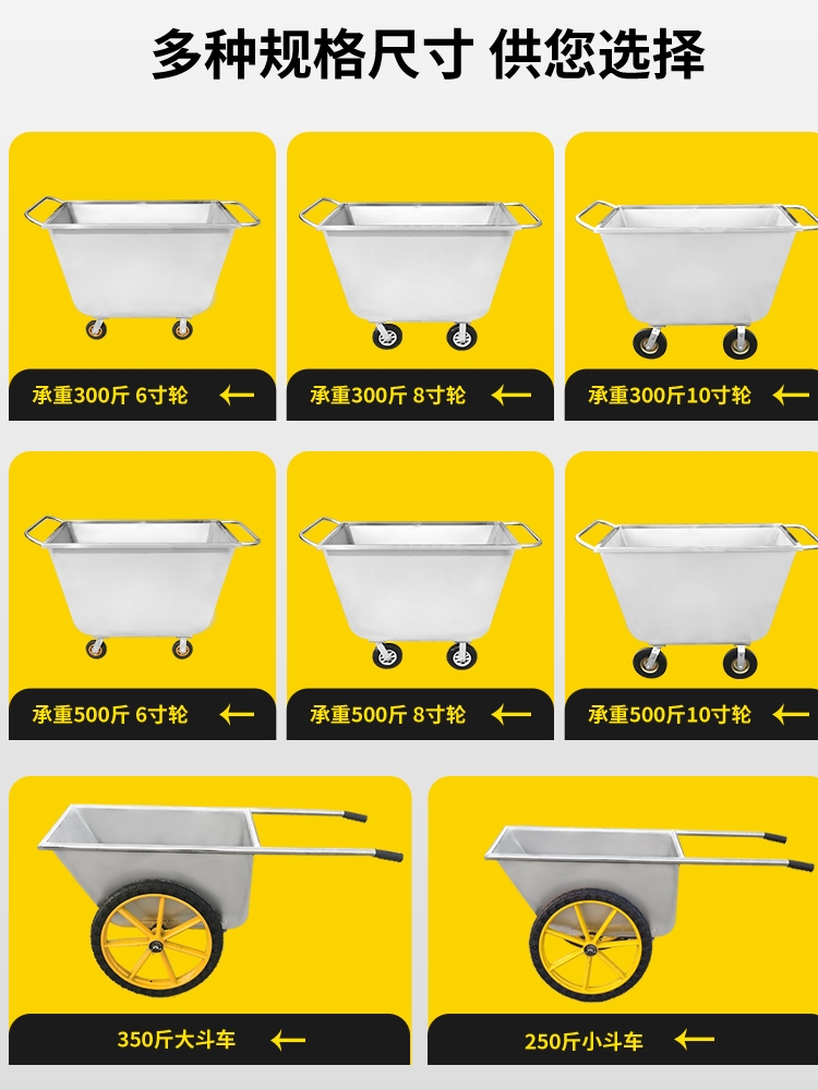 国产通用 201不锈钢翻斗车 加厚300斤推车(6寸静音轮) 1辆