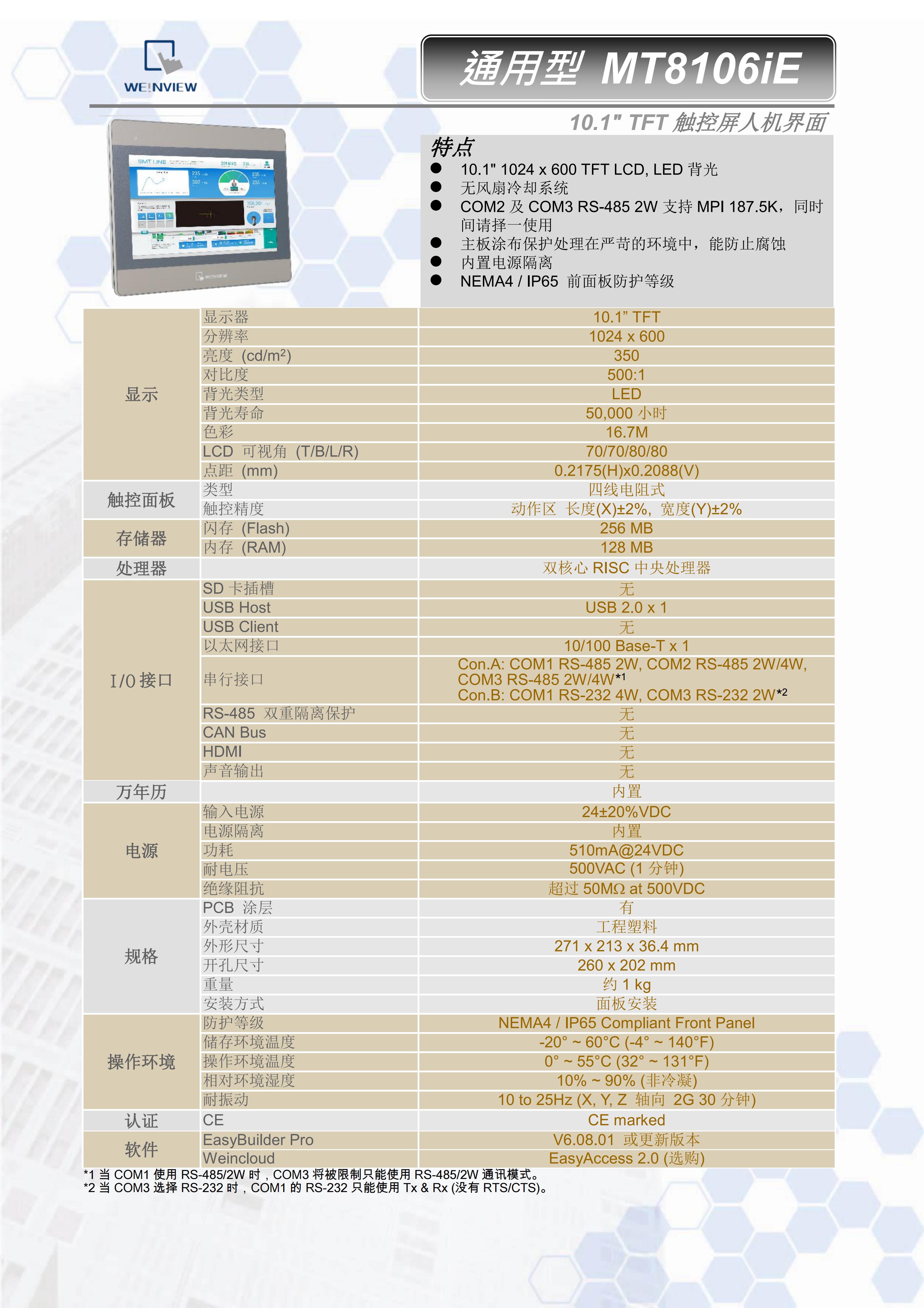 威纶 显示器 MT8106IE 10.1” TFT 1个