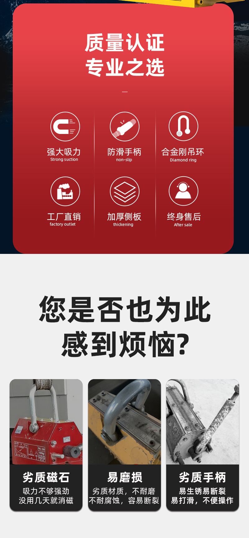 上海沪工 永磁起重器 出口级1吨【钢板厚>40毫米】 1台
