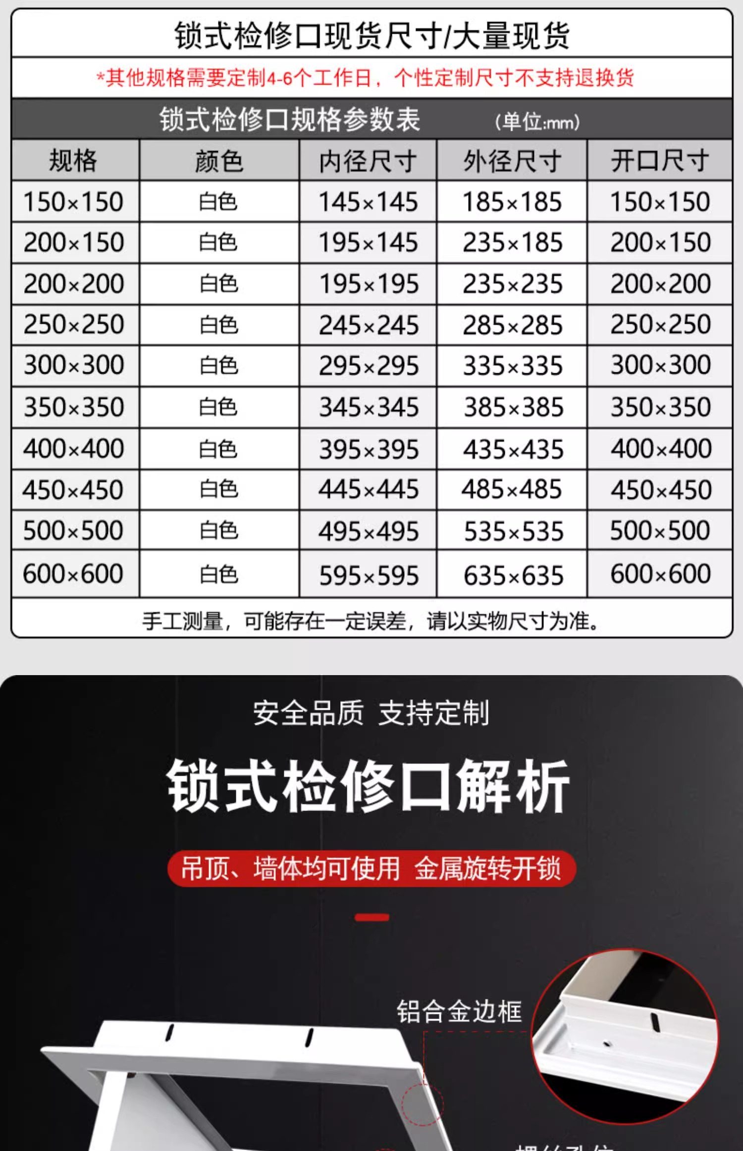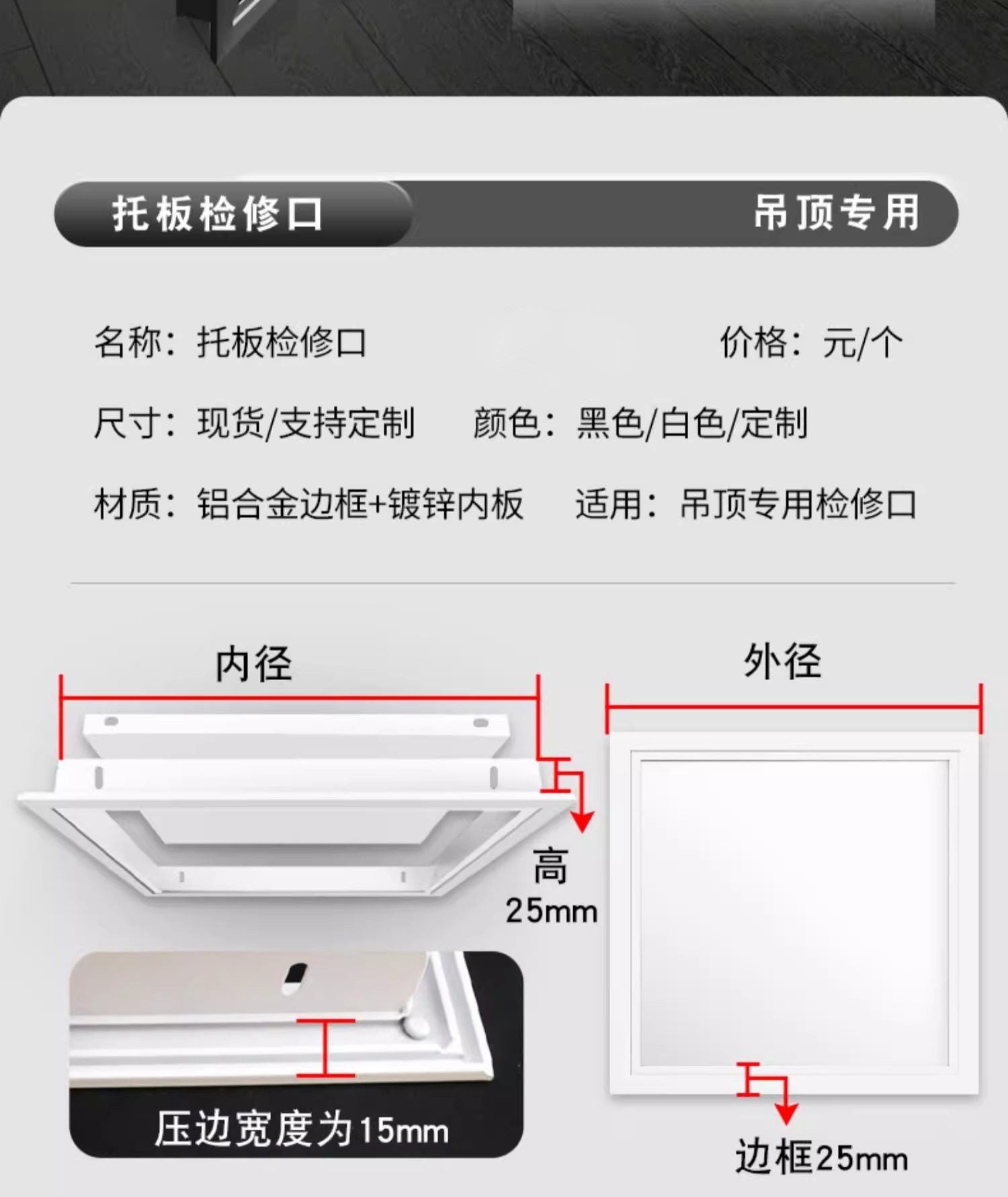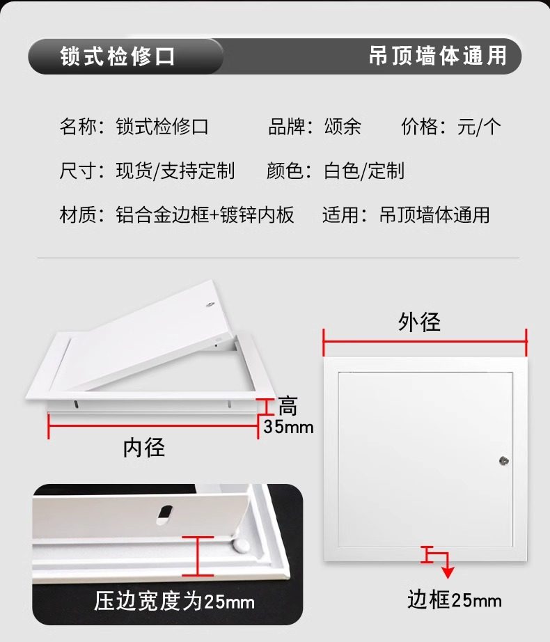 国产通用 吊顶检查口 白色 铝托式 开孔400×400 特厚 1个