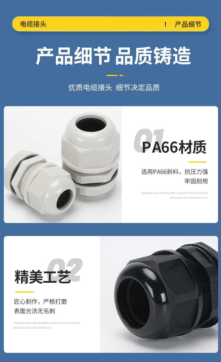 国产通用 电缆防水接头 尼龙 白色阻燃-M12*1.5(3-6.5mm) 1个