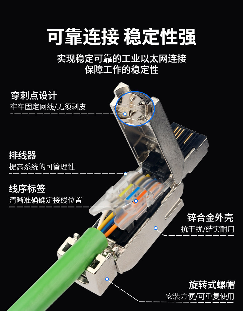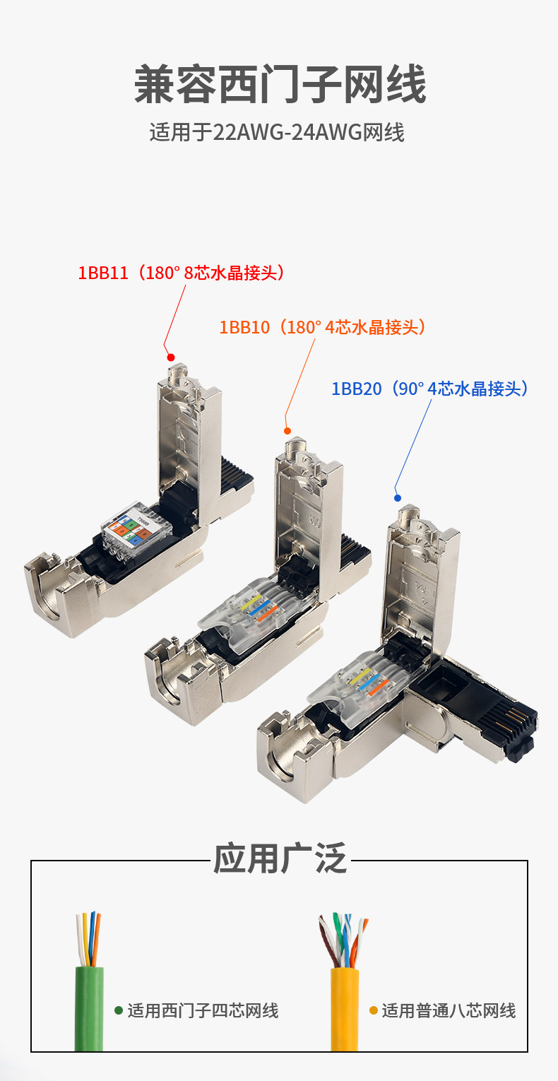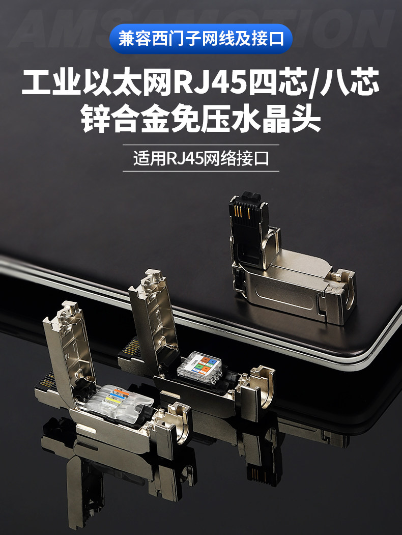 艾莫迅 兼容西门子以太网工业免压水晶接头 1BB10 180度4针 1个