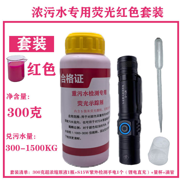 国产通用 污水检测套装 红色荧光剂300克一瓶+s15w锂电紫外灯+量杯+滴管 1套