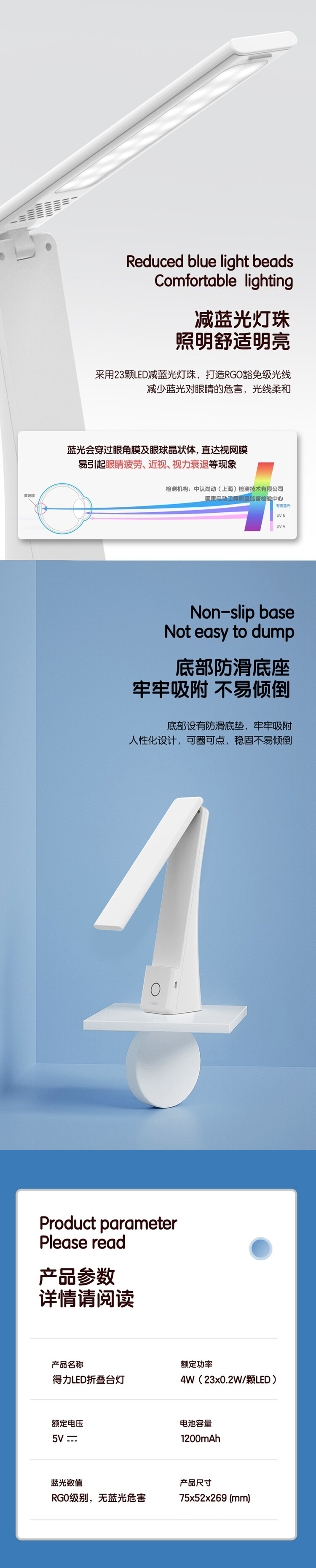 得力 LED折叠台灯 17855 白色 4W 1台