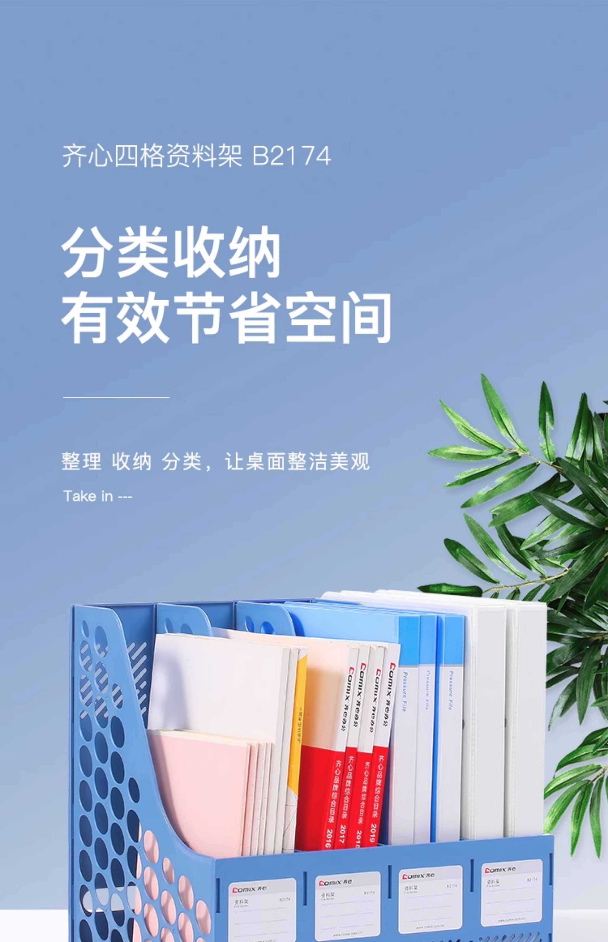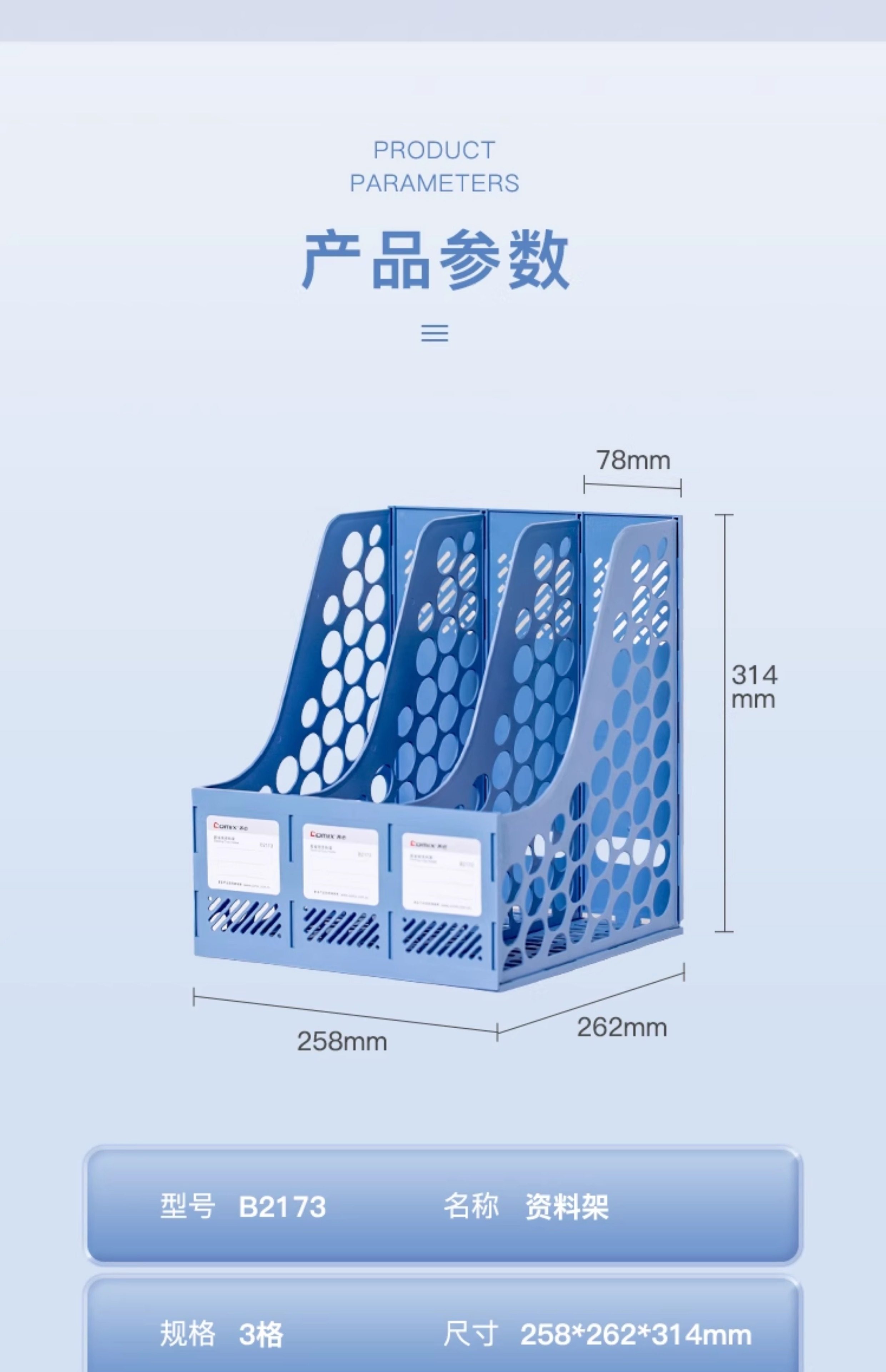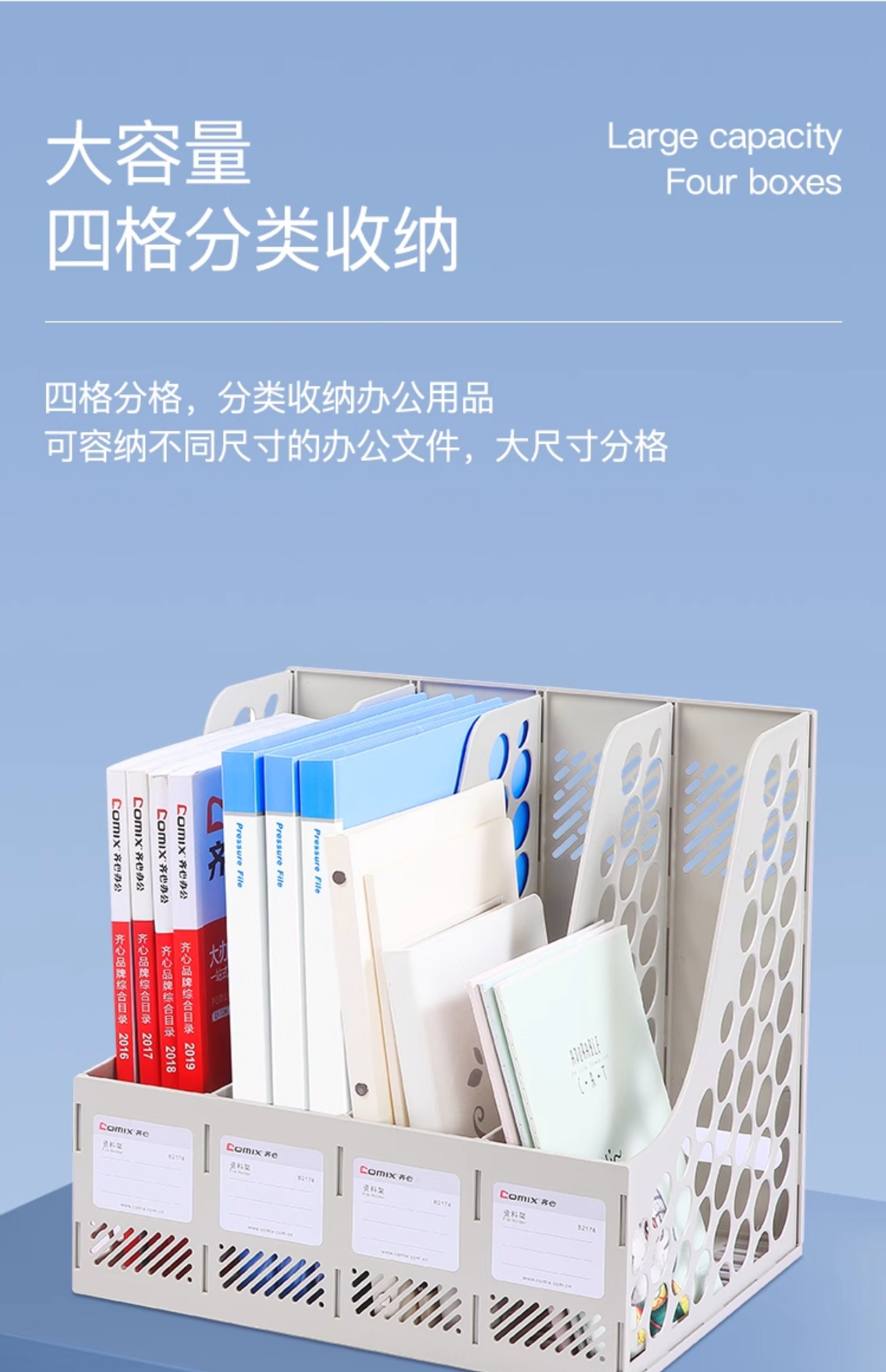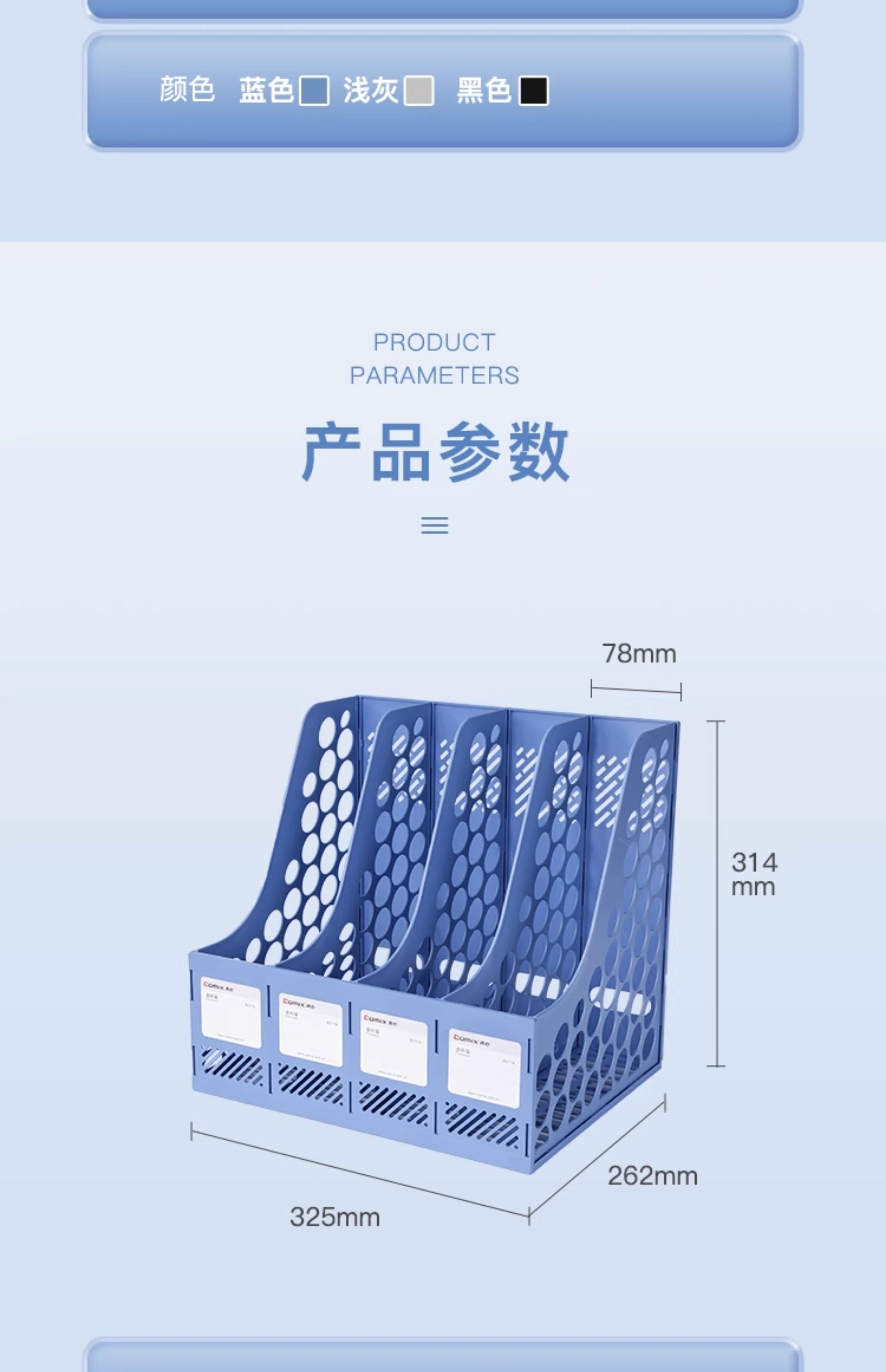 齐心(COMIX) 三联收纳文件框 B2073 灰色 259*262*291mm 1个