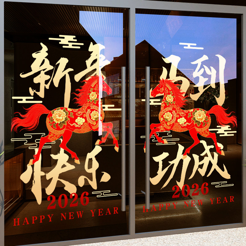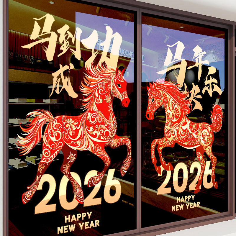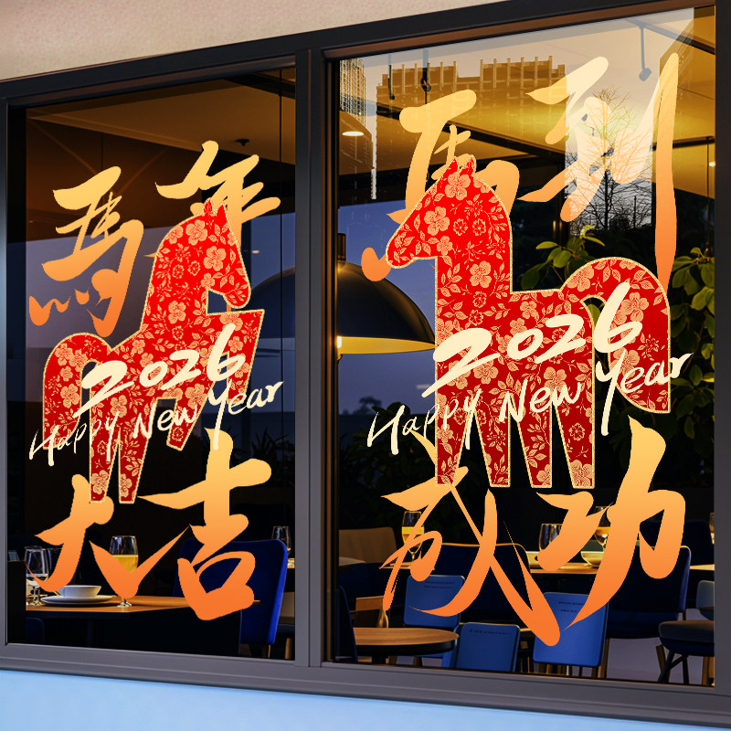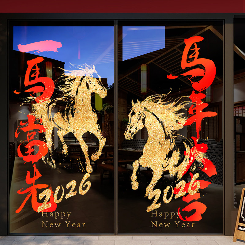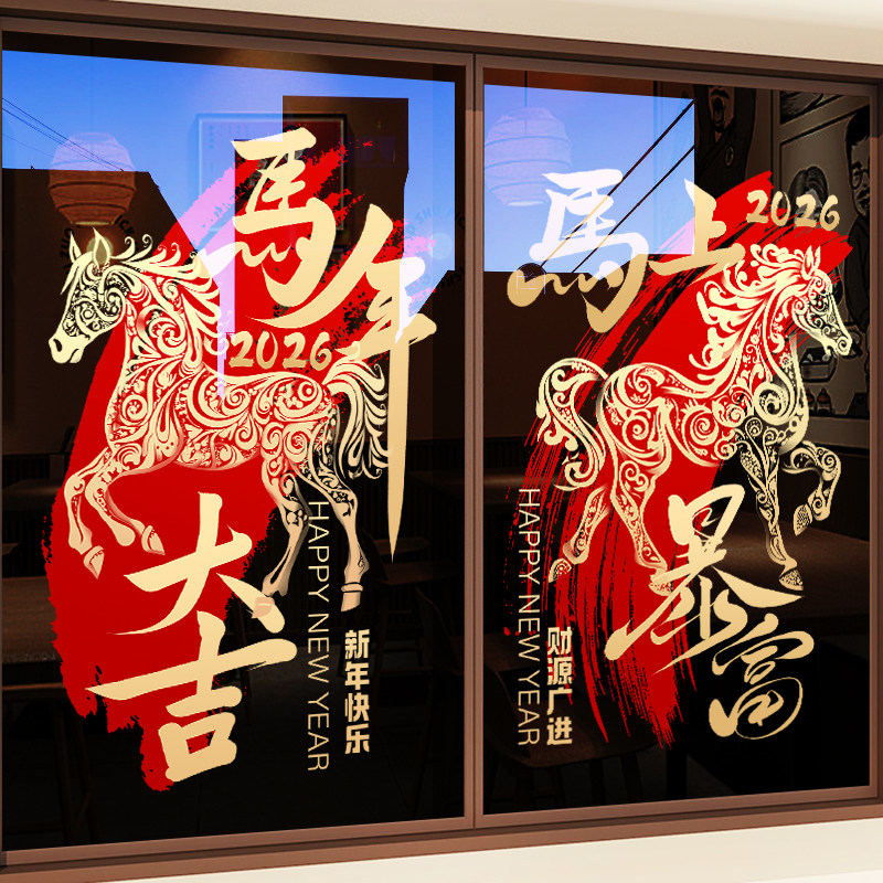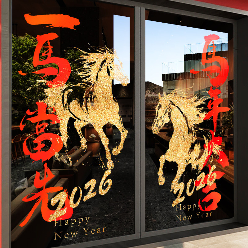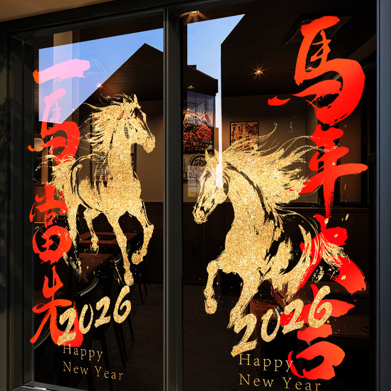 国产通用 新年装饰贴纸 Z25K6 静电UV贴 大号 闪耀骏马马年大吉 1张