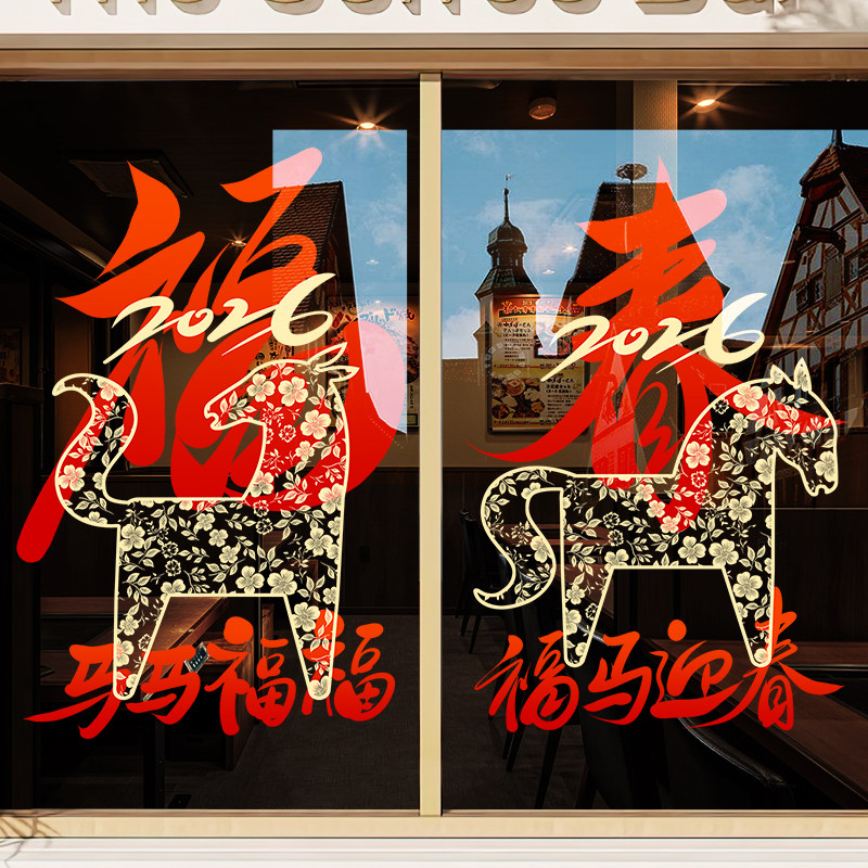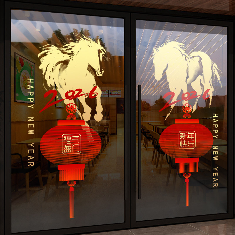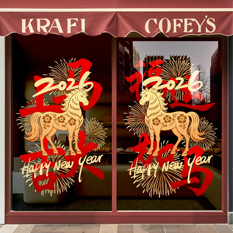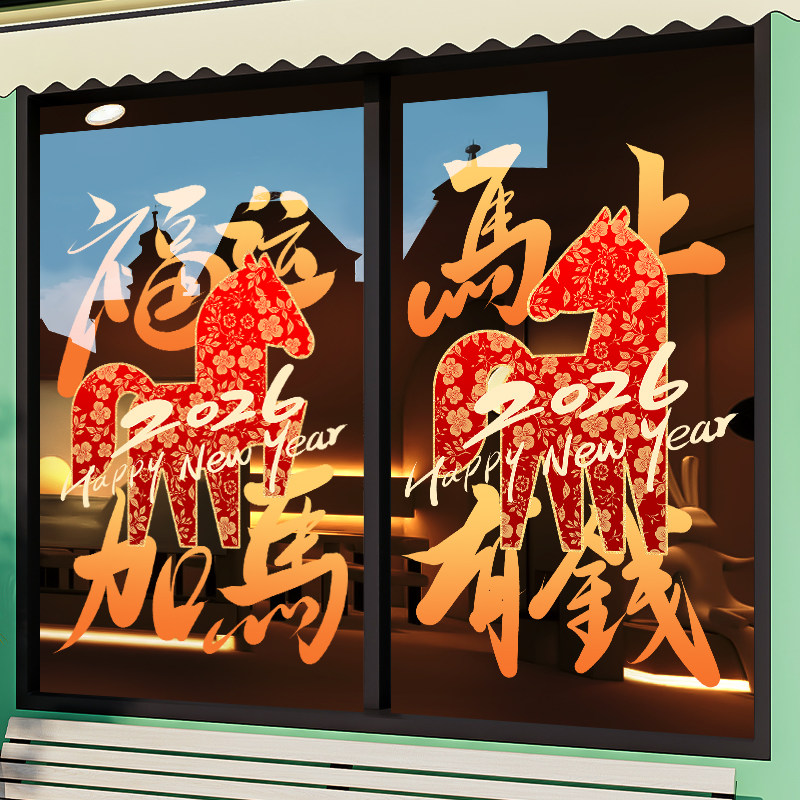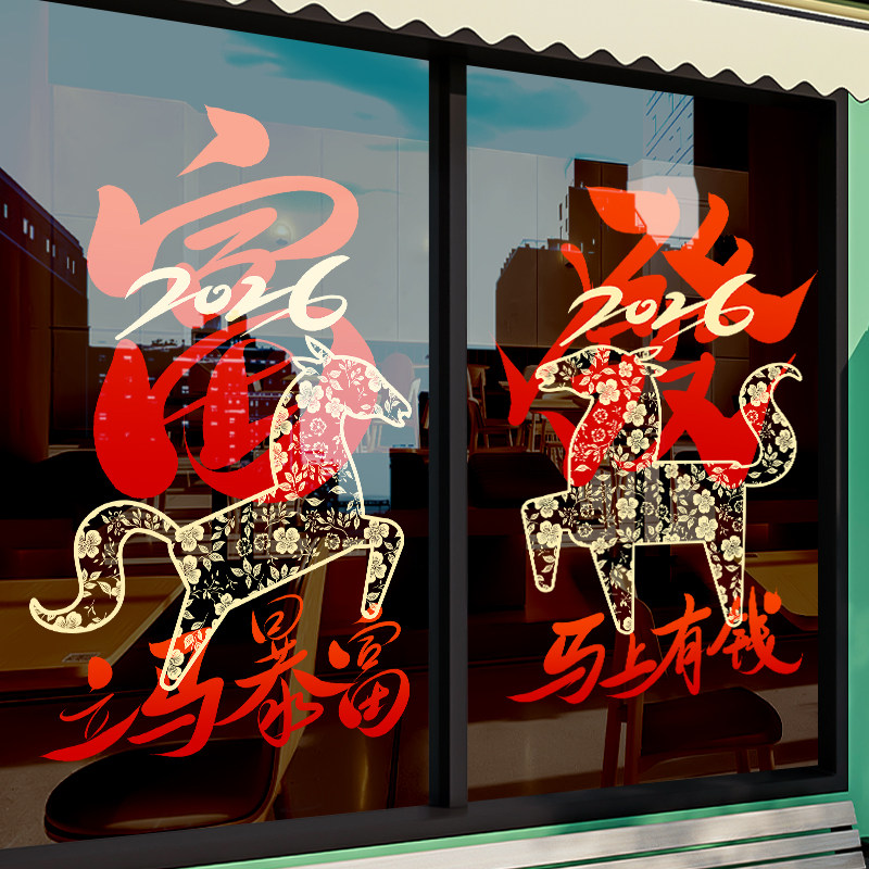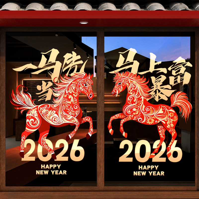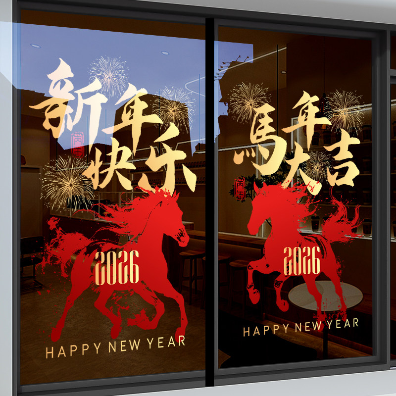 国产通用 新年装饰贴纸 Z25K6 静电UV贴 大号 闪耀骏马马年大吉 1张