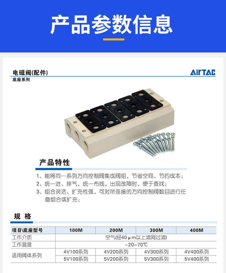 亚德客 4V15V电磁阀配件400M系列底座 400M4F 1个