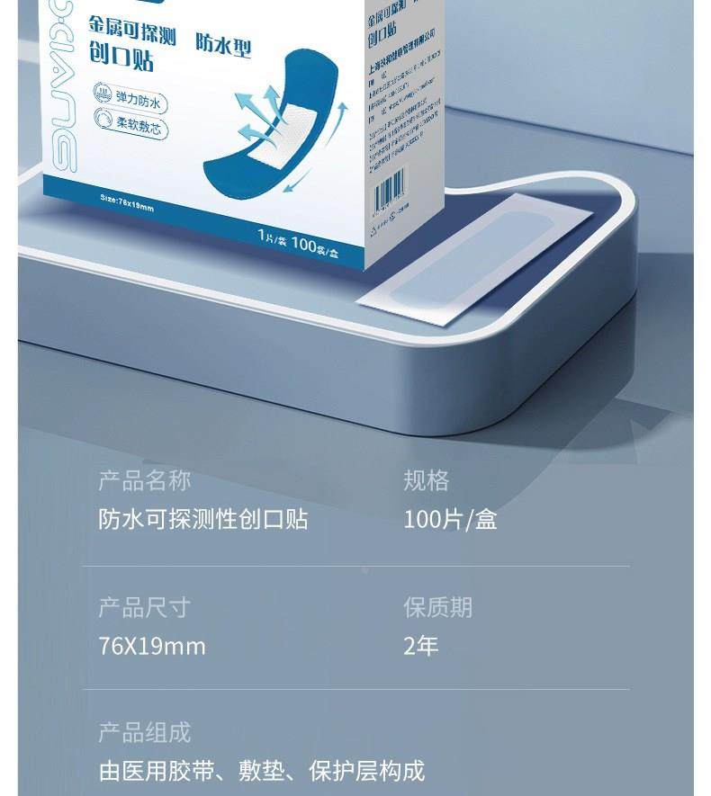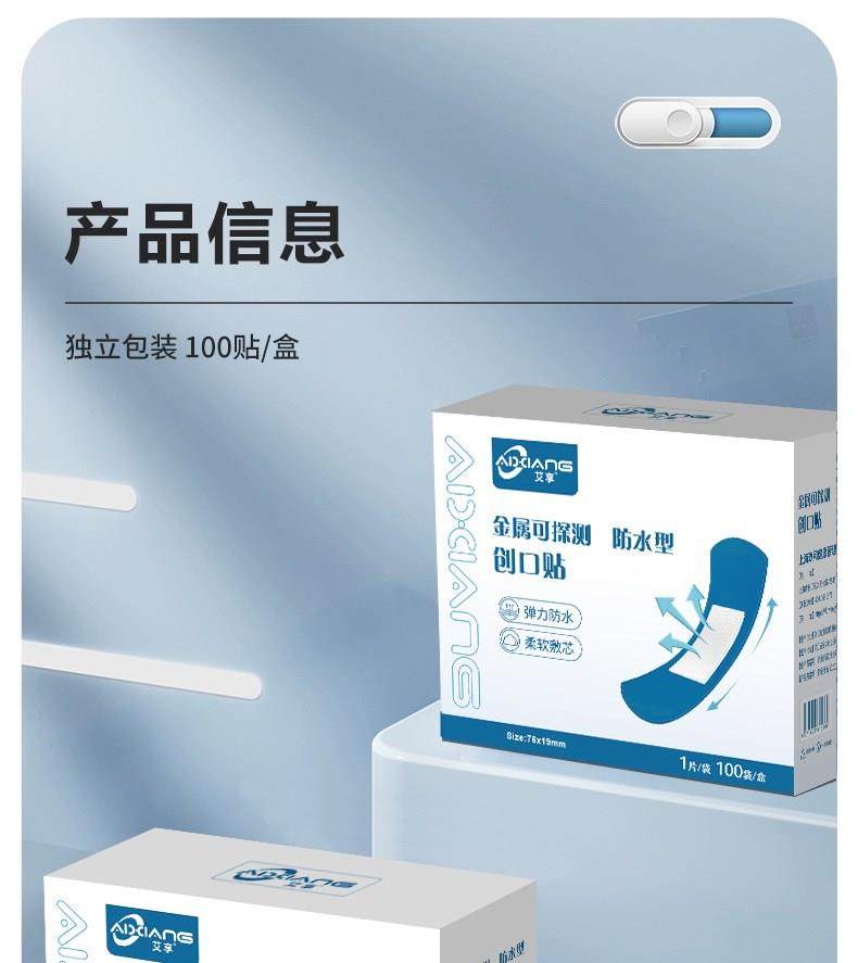 艾享 金属可探测创口贴 76*19mm 100片 1盒
